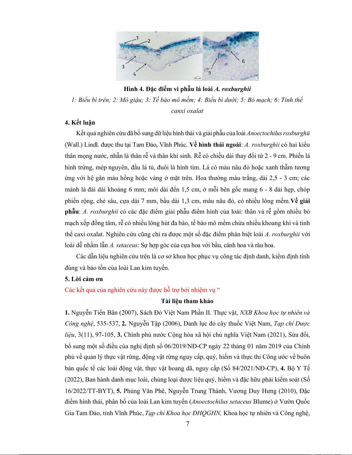 đúng và bảo tồn của loài Lan kim tuyến. 5. Lời cảm ơn