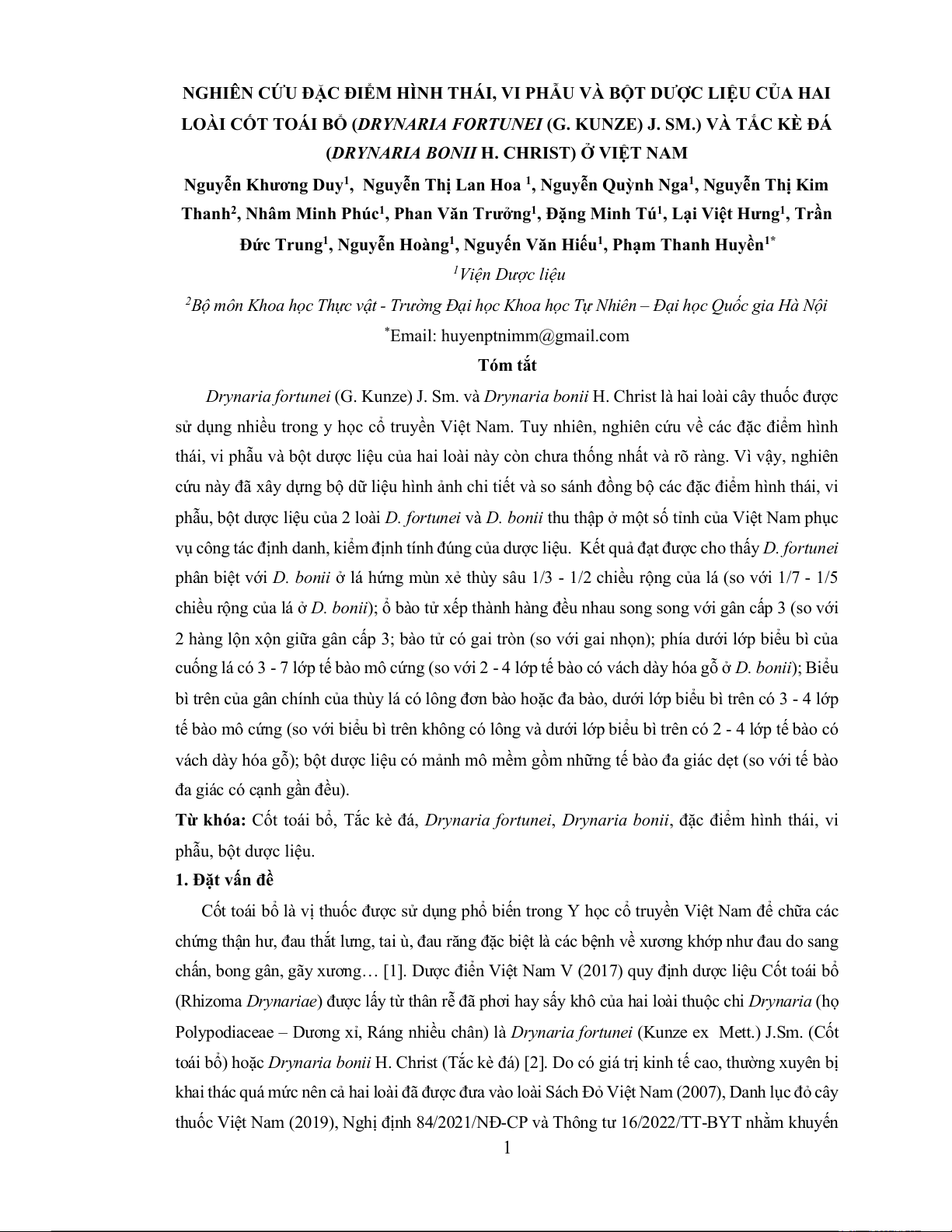 Nguyễn Khương Duy1, Nguyễn Thị Lan Hoa 1, Nguyễn Quỳnh Nga1, Nguyễn Thị Kim