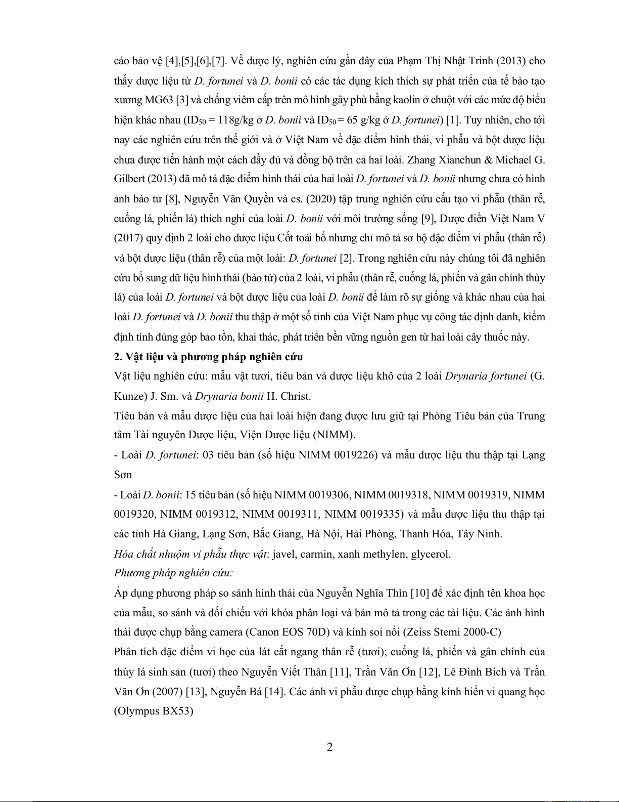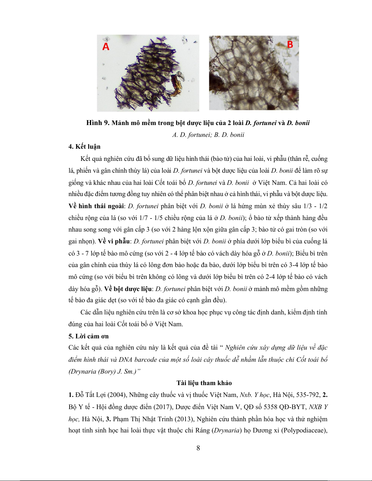 đúng của hai loài Cốt toái bổ ở Việt Nam. 5. Lời cảm ơn