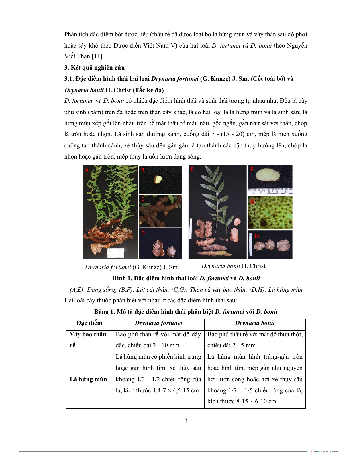 3.1. Đặc điểm hình thái hai loài Drynaria fortunei (G. Kunze) J. Sm. (C t toái b ố ổ) và