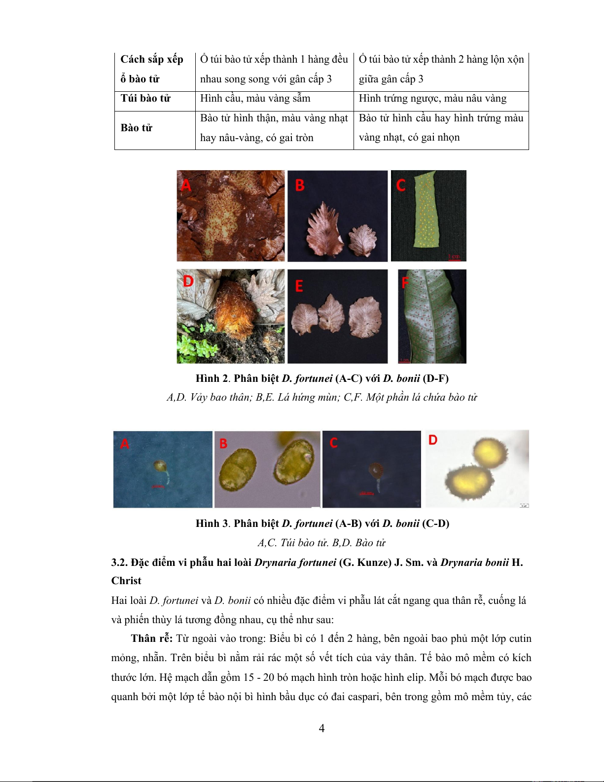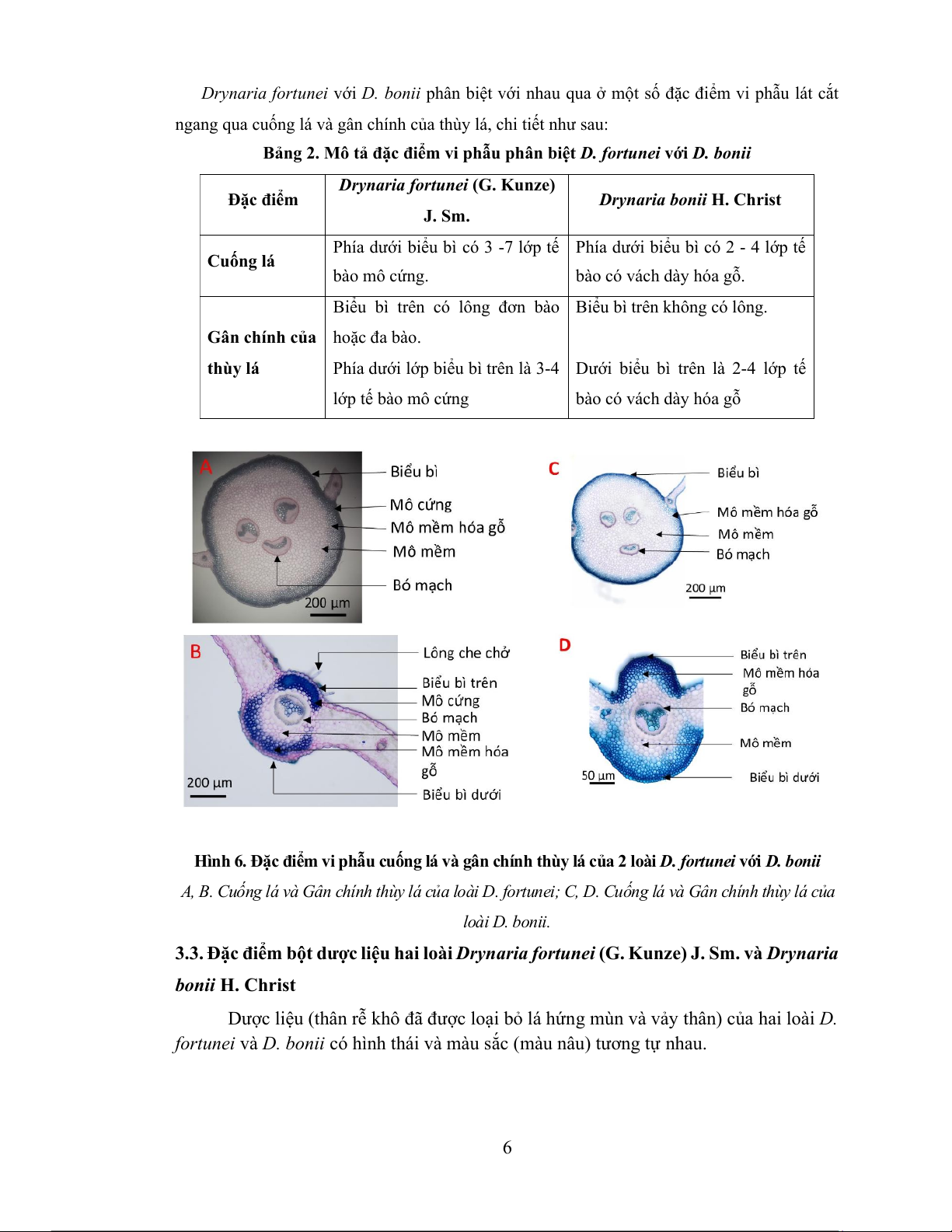 ả đặc điểm vi phẫu phân biệt D. fortunei với D. bonii