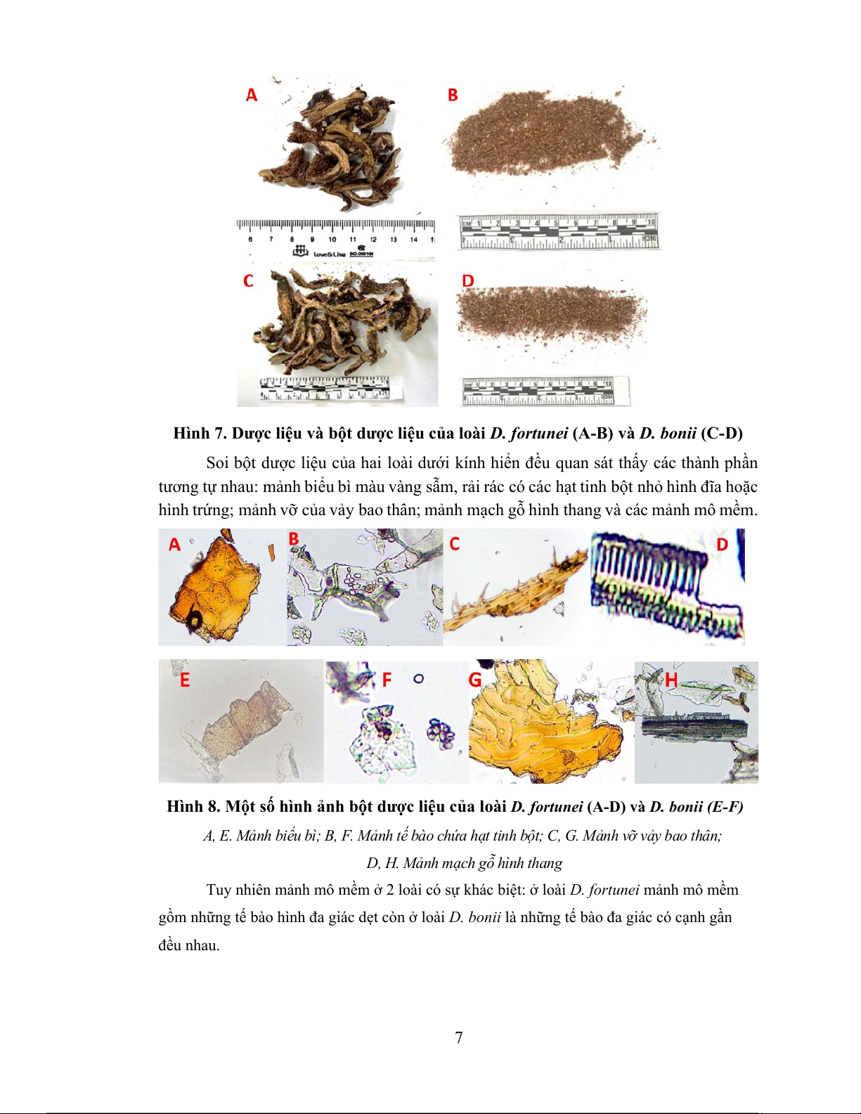 hoặc sấy khô theo Dược điển Việt Nam V) của hai loài D. fortunei và D. bonii theo Nguyễn Viết Thân [11].