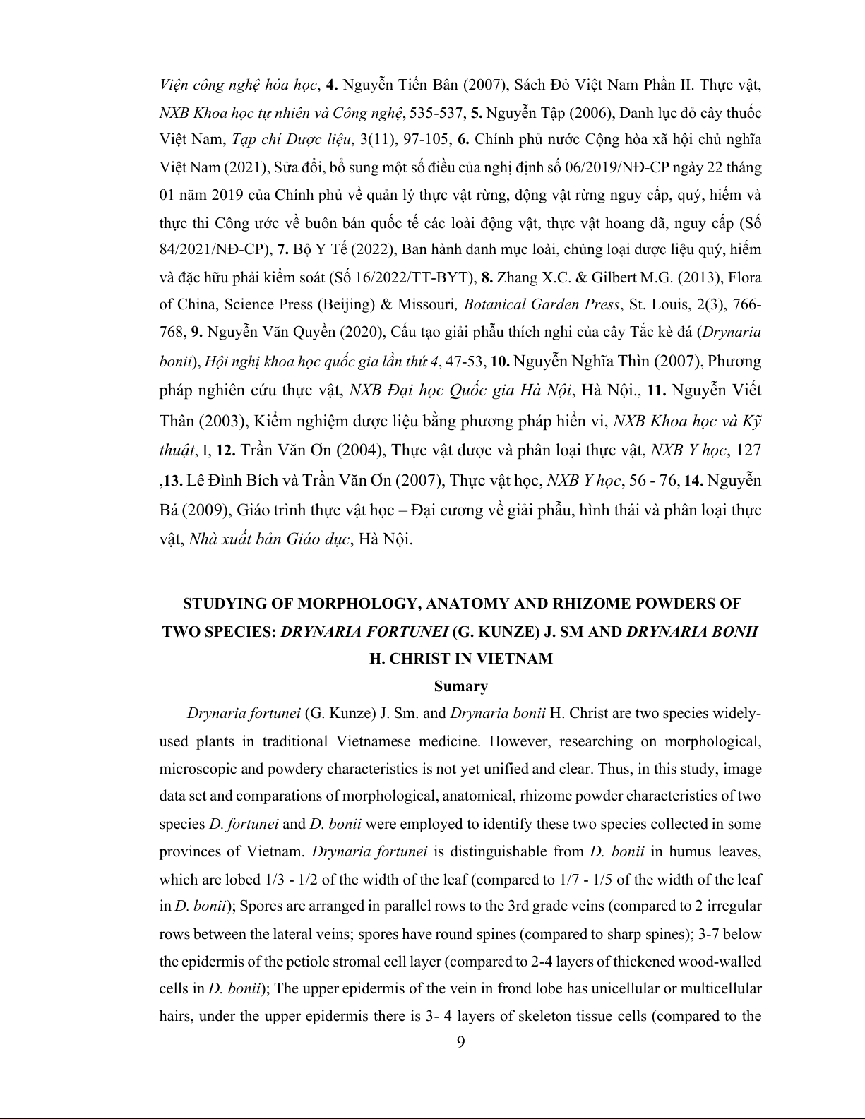 TWO SPECIES: DRYNARIA FORTUNEI (G. KUNZE) J. SM AND DRYNARIA BONII H. CHRIST IN VIETNAM Sumary