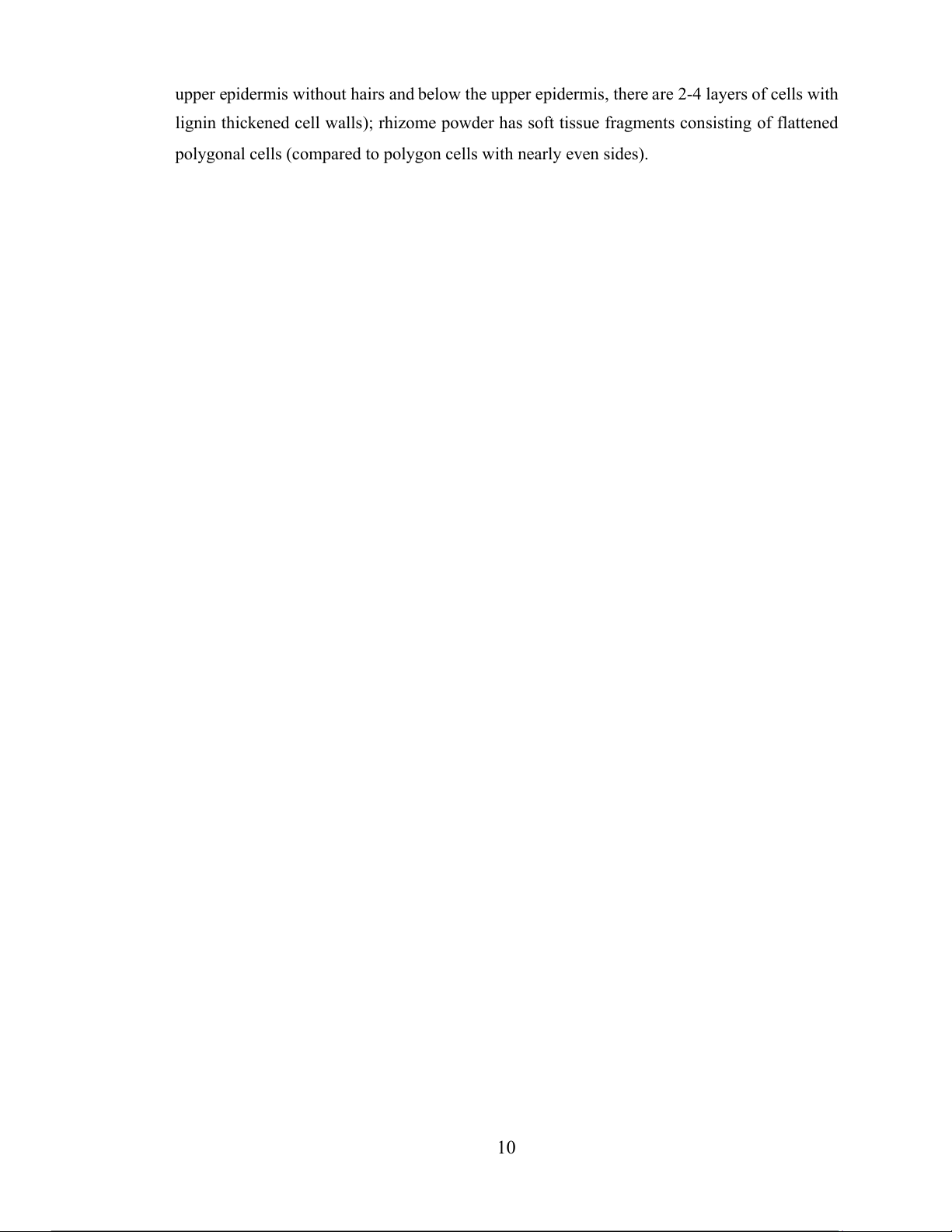 lignin thickened cell walls); rhizome powder has soft tissue fragments consisting of flattened