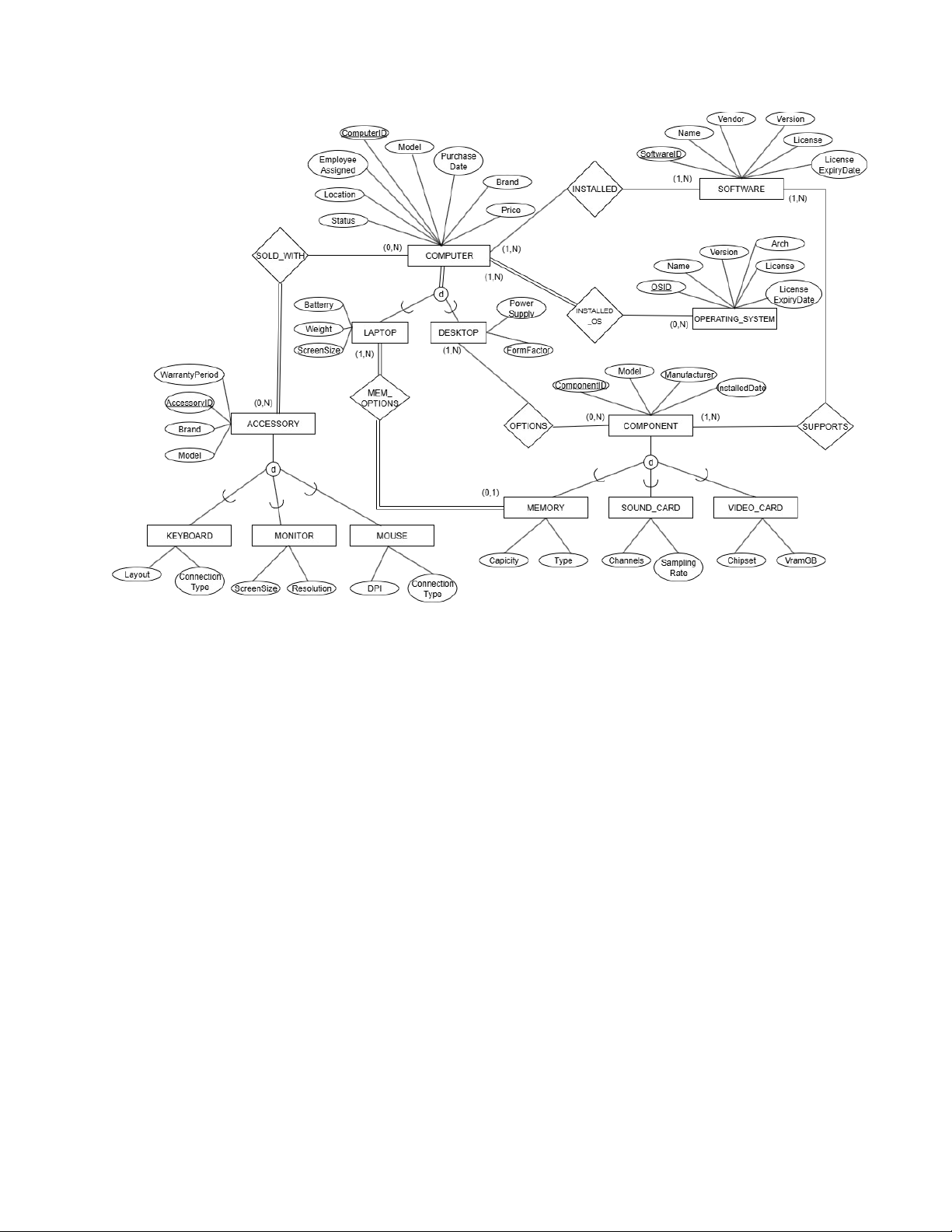 • SOFTWARE (SoftwareID, Name, Vendor, Version, LicenseKey, LicenseExpiryDate)