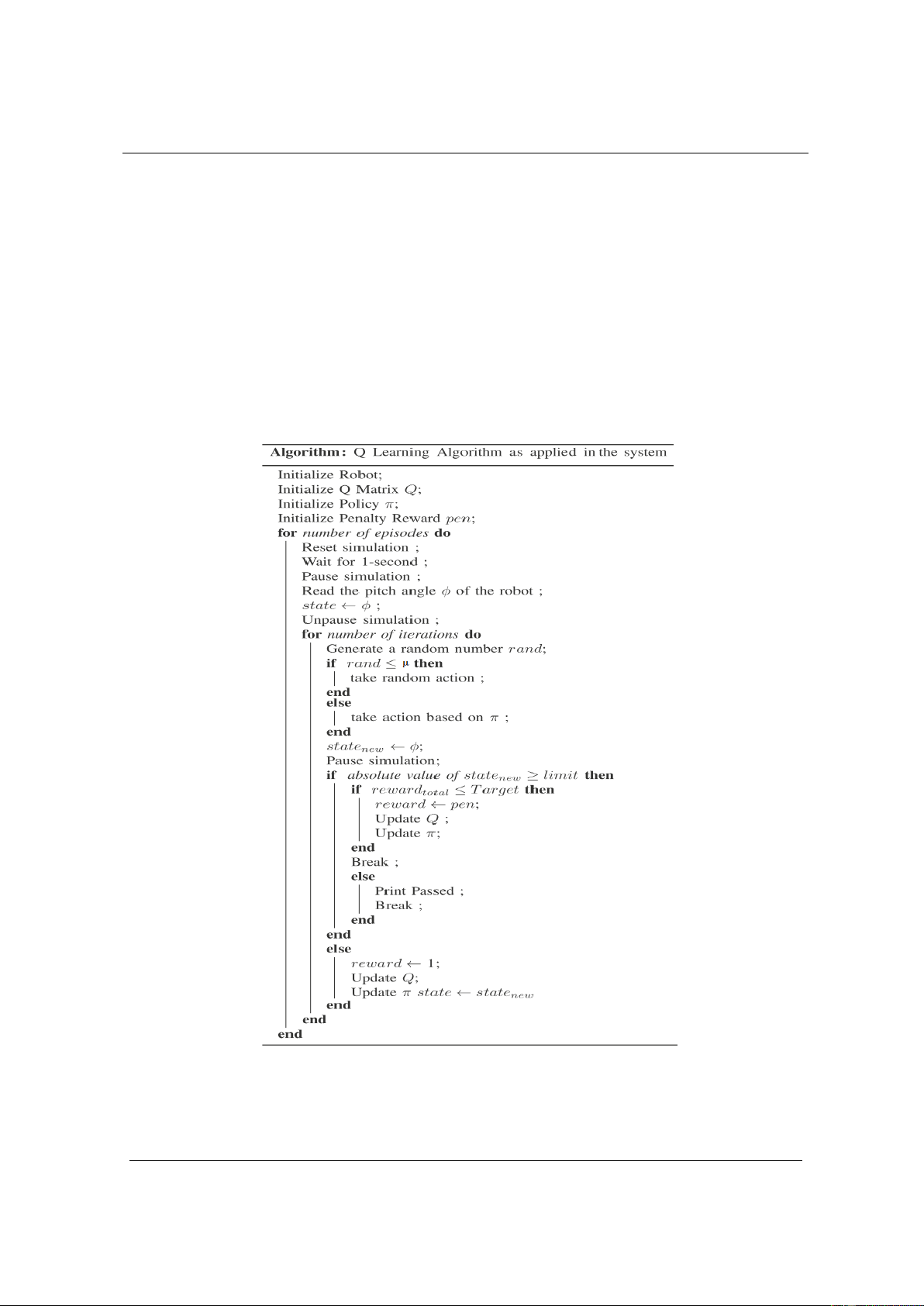cho phép, tức là ± 5 độ. Lúc đầu, mô hình robot, ma trận Q, chính sách π sẽ được khởi tạo. Có