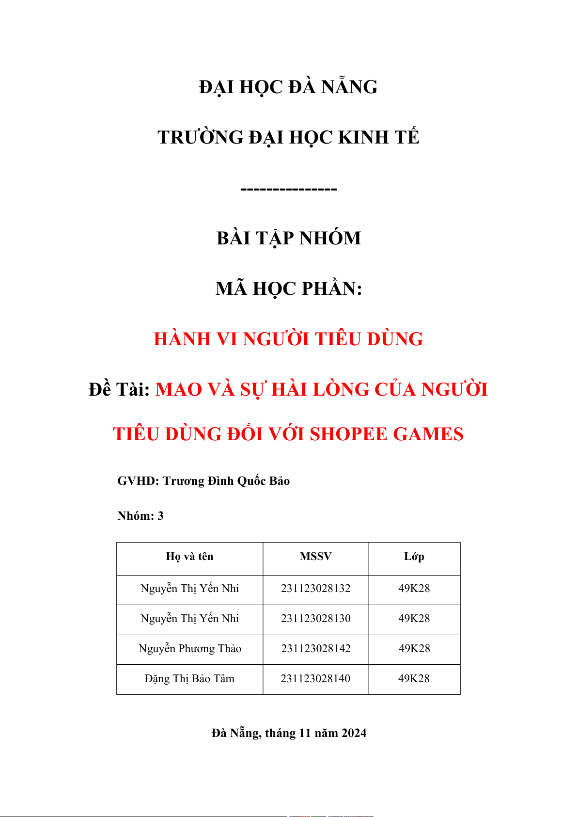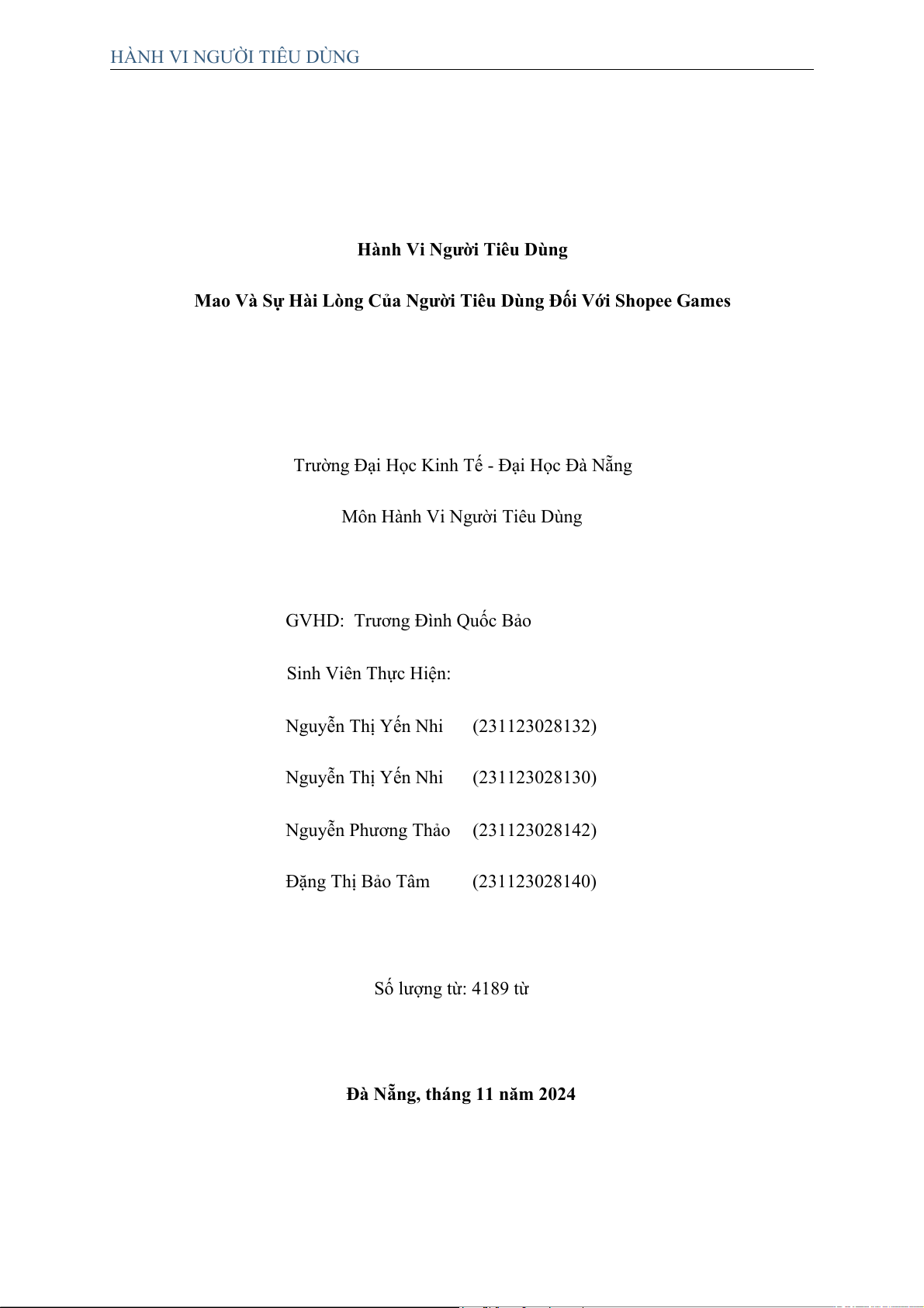Đà Nẵng, tháng 11 năm 2024 HÀNH VI NGƯỜI TIÊU DÙNG