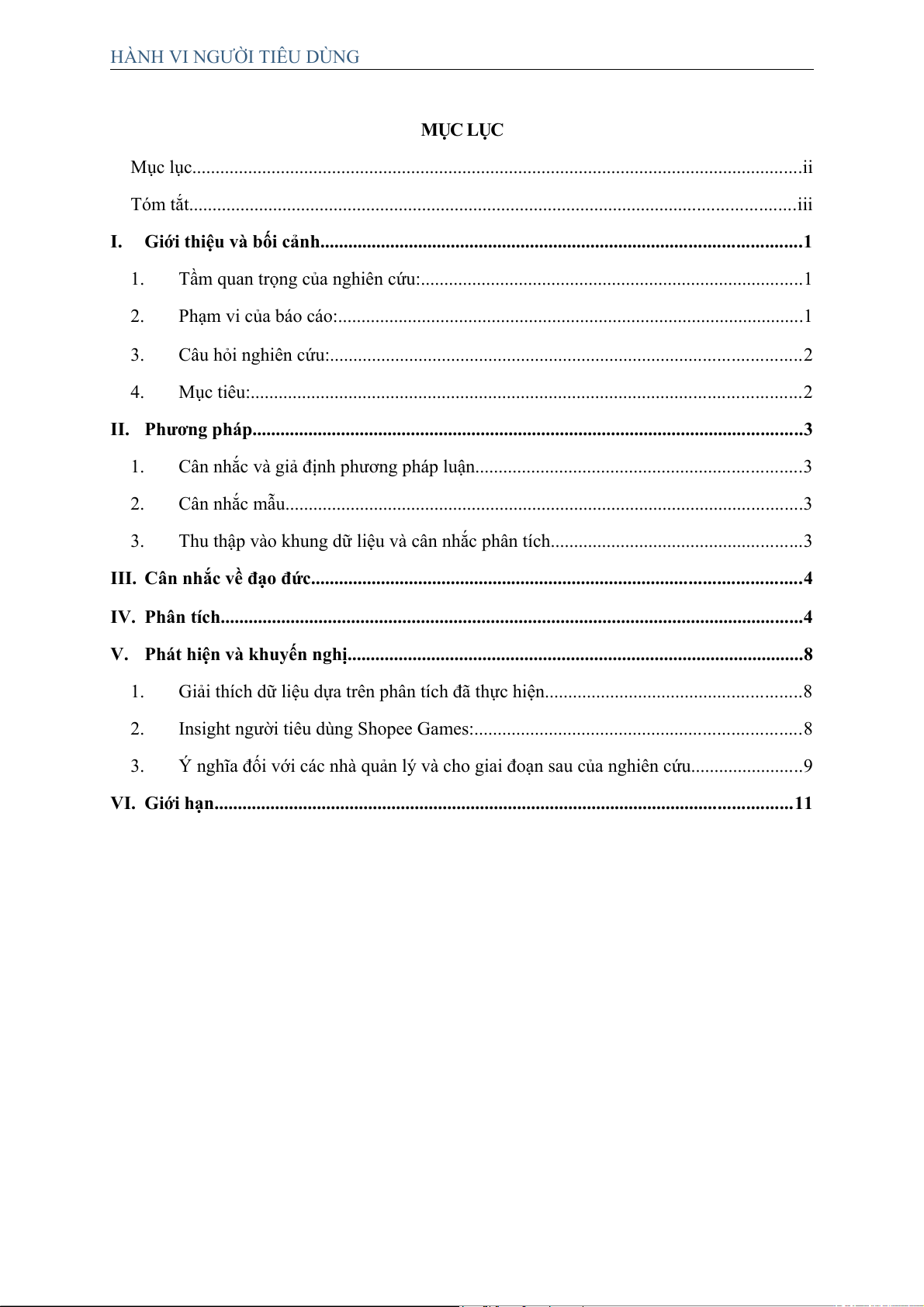 VI. Giới hạn............................................................................................................................11 HÀNH VI NGƯỜI TIÊU DÙNG TÓM TẮT