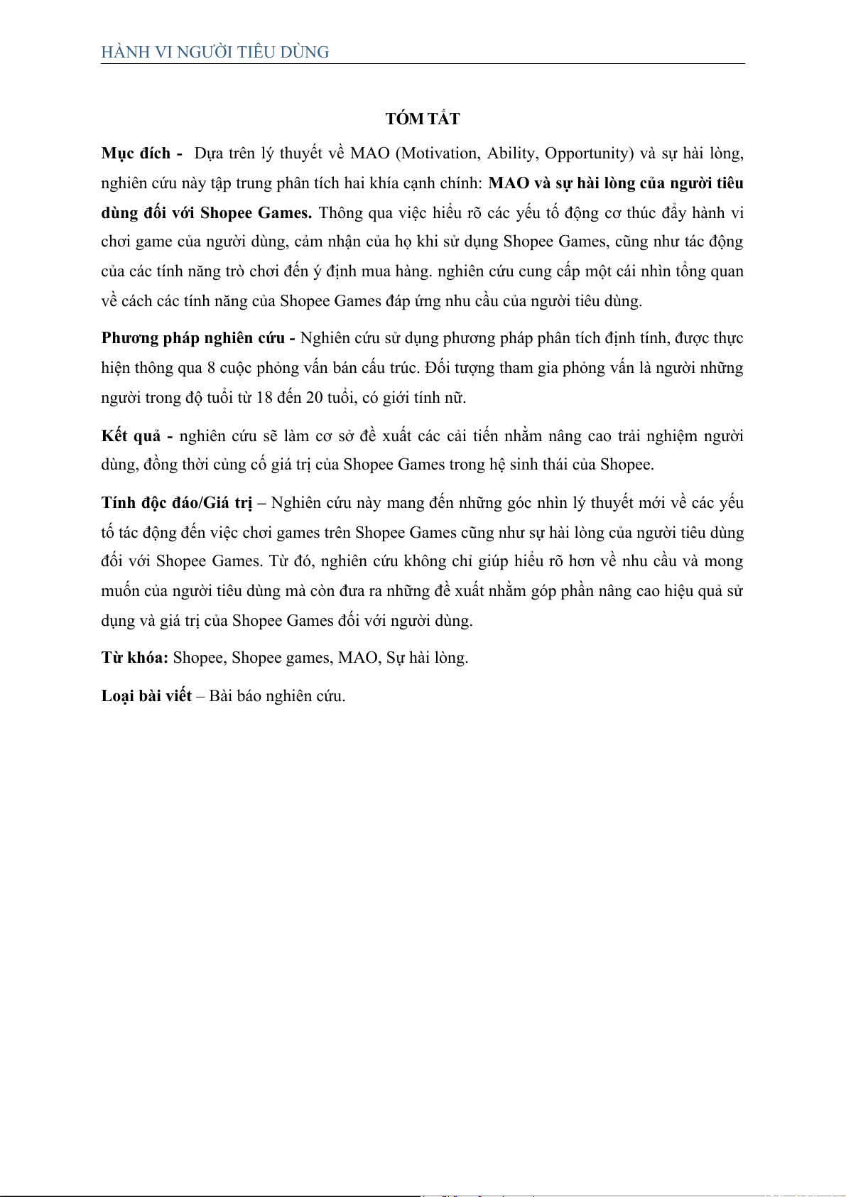 Từ khóa: Shopee, Shopee games, MAO, Sự hài lòng.