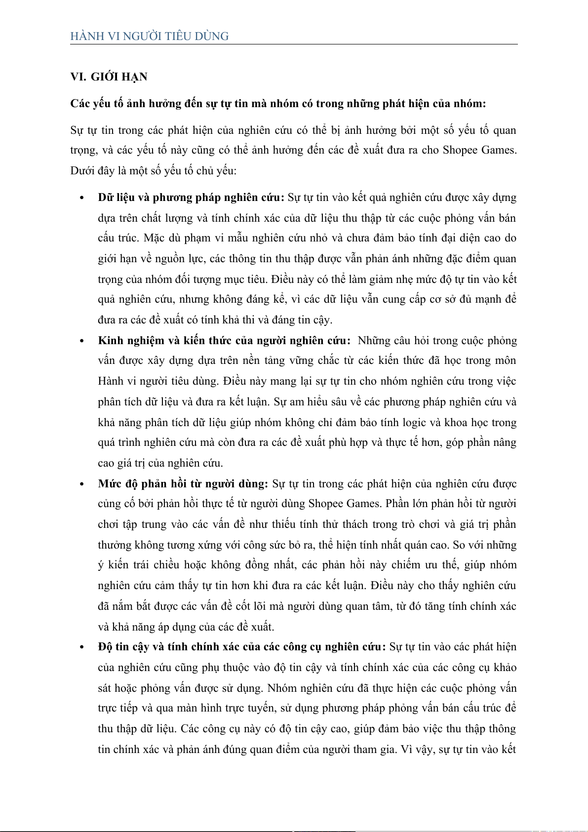 và tham gia nhiều hơn hay không. HÀNH VI NGƯỜI TIÊU DÙNG VI. GIỚI HẠN