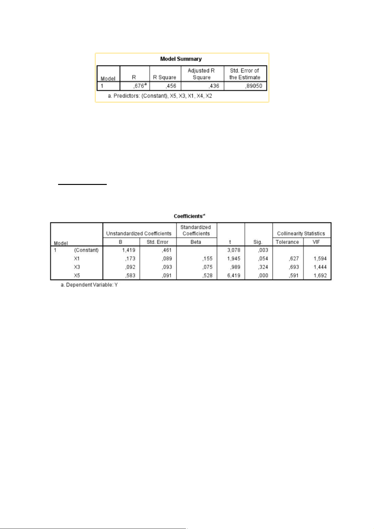 Kiểm định ý nghĩa của hệ số hồi quy: không có Sig > 0.05 nên không loại 17 lOMoAR cPSD| 46342576