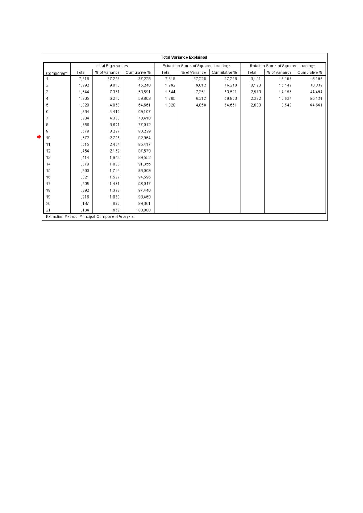 Hệ số Cronbach’s Alpha cả nhóm là 0.906 > 0.6. Nhóm có 5 nhân tố 15 lOMoAR cPSD| 46342576