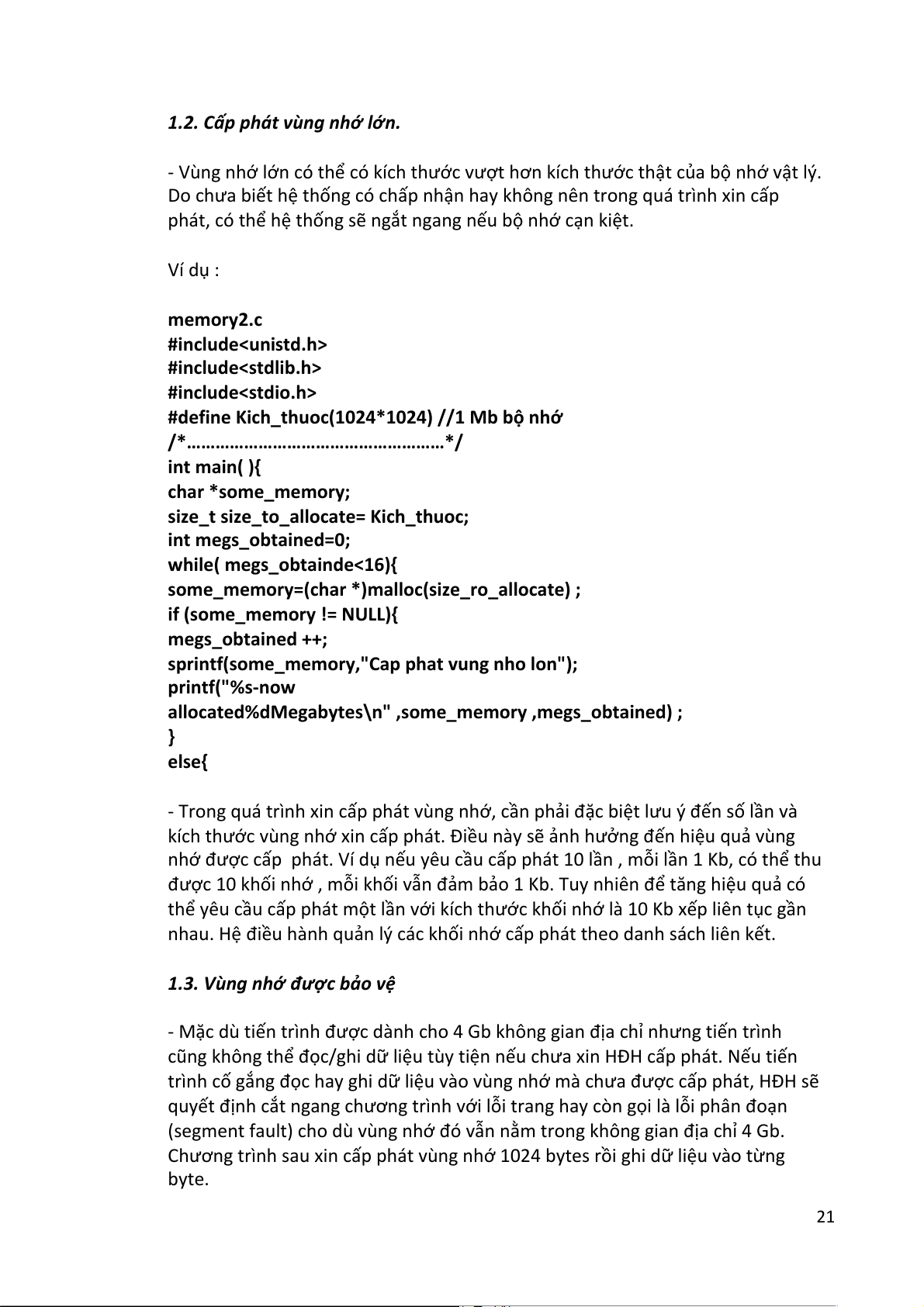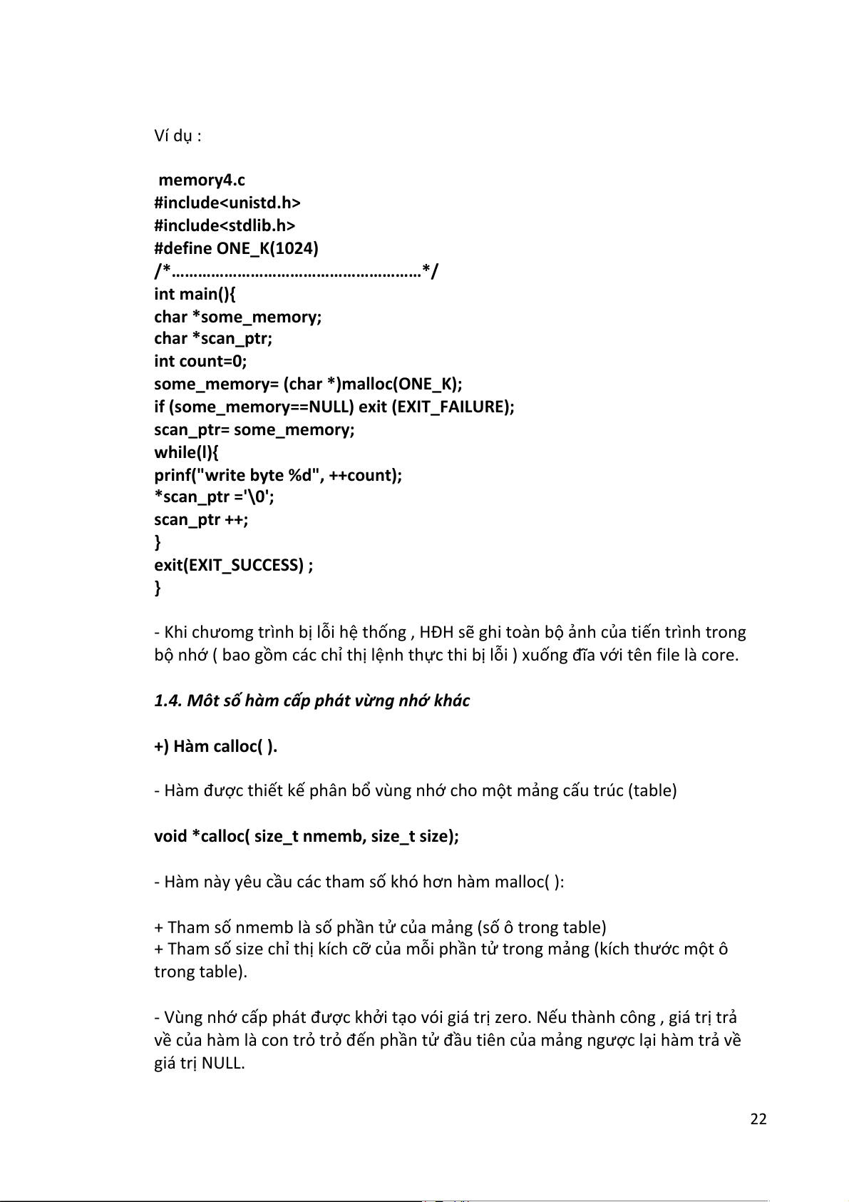 phát, có thể hệ thống sẽ ngắt ngang nếu bộ nhớ cạn kiệt. Ví dụ : memory2.c #include #include #include