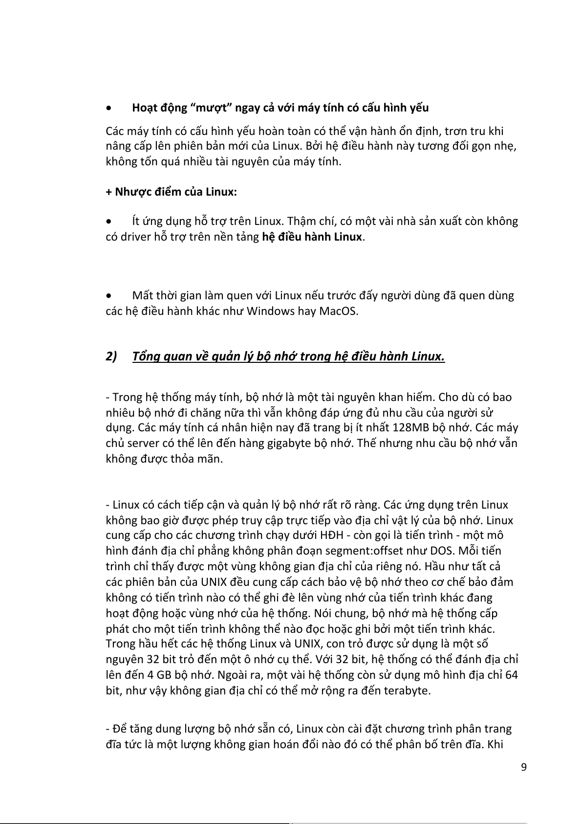 2. Tổng quan về quản lý bộ nhớ trong hệ điều hành Linux..................................................9