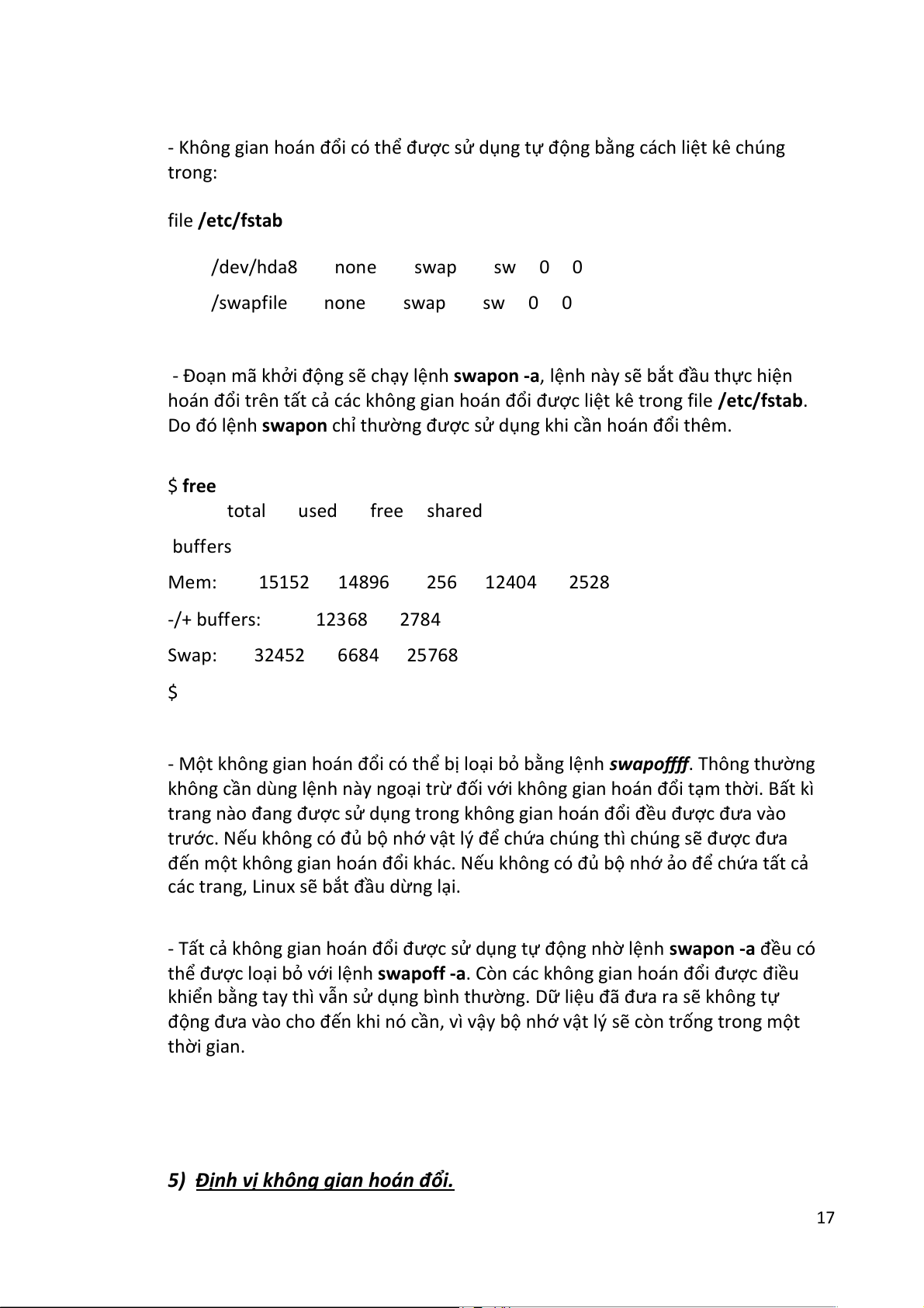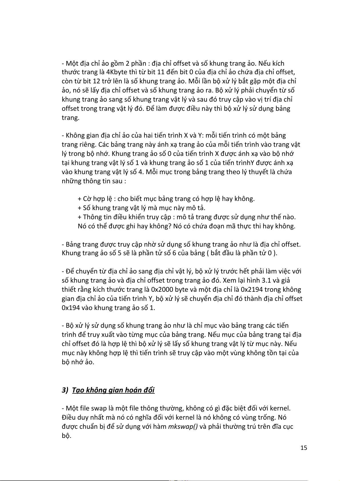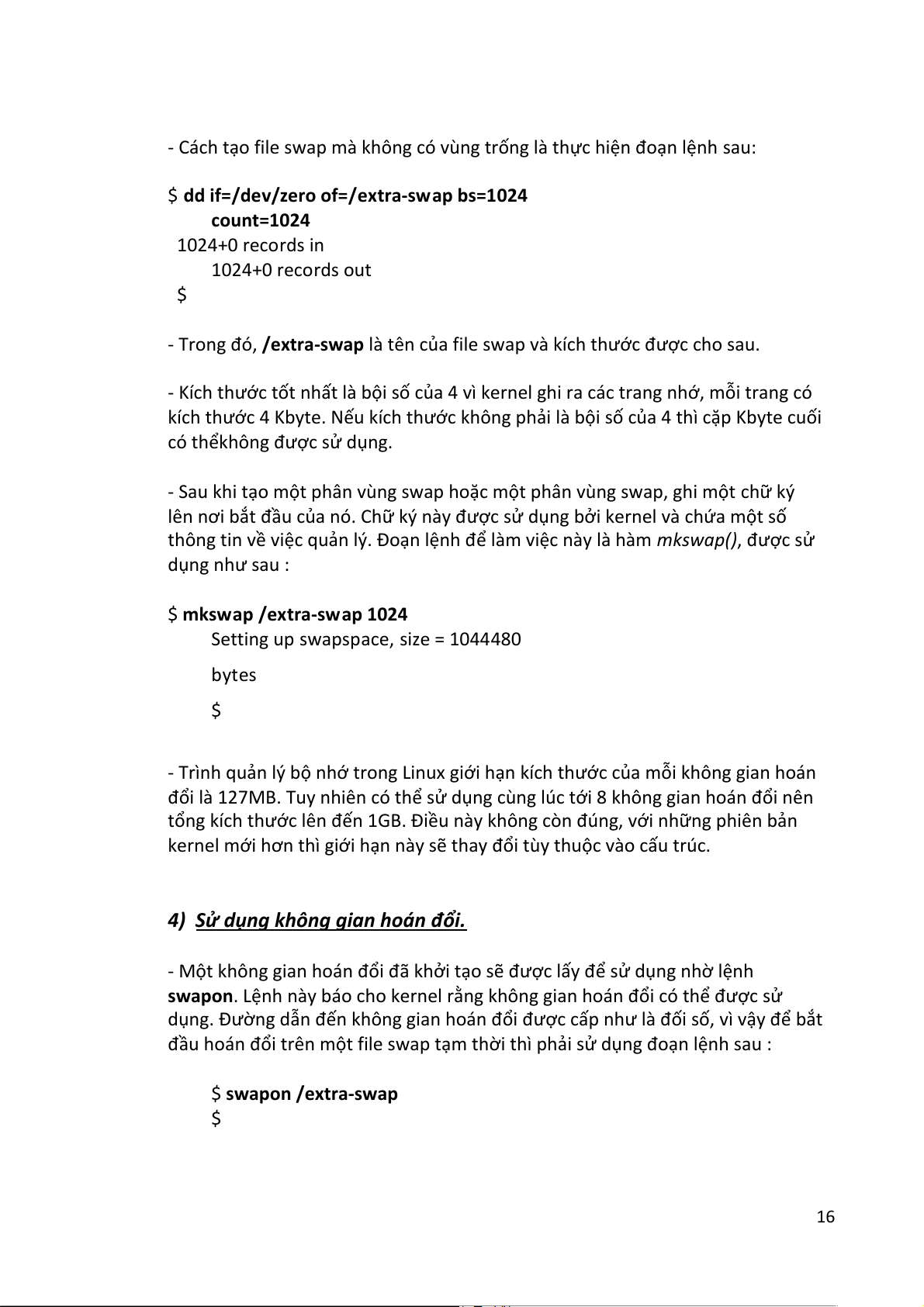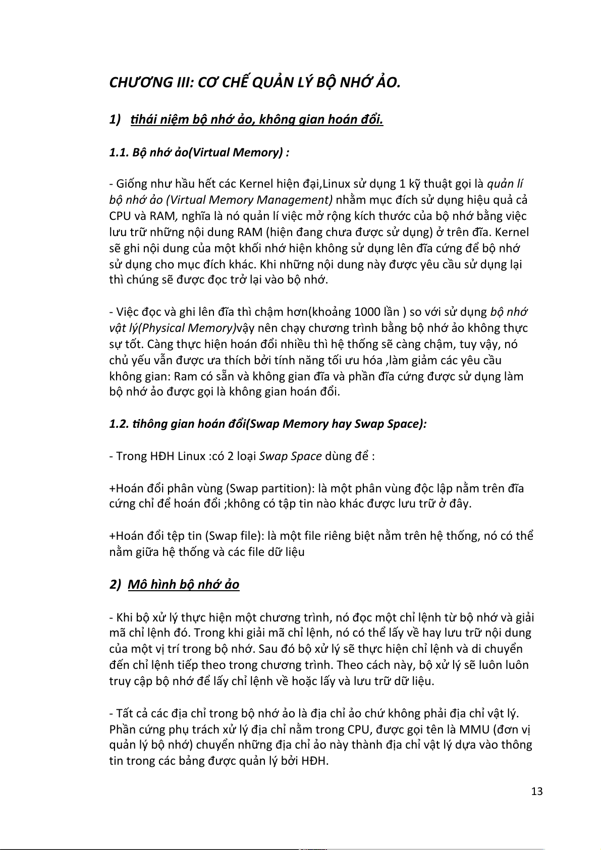 - Để tăng dung lượng bộ nhớ sẵn có, Linux còn cài đặt chương trình phân trang