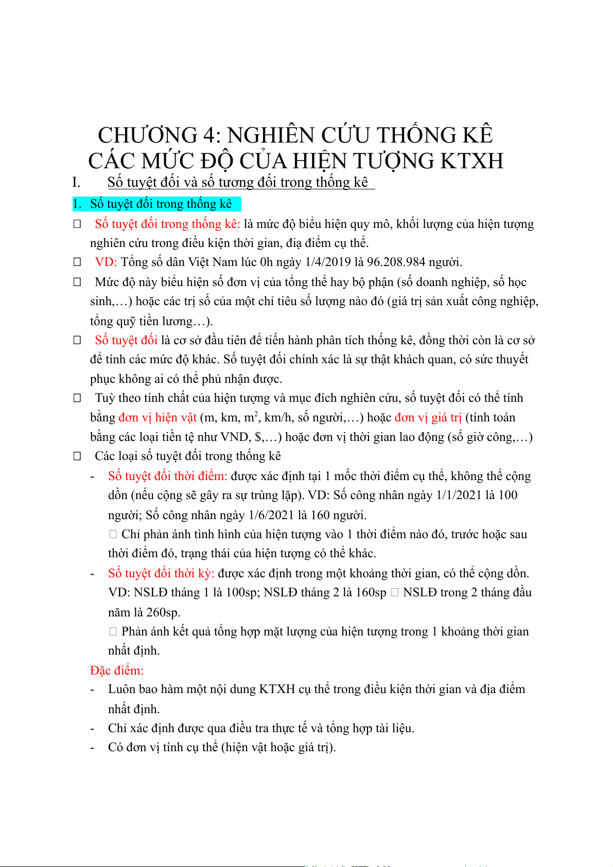1. Số tuyệt đối trong thống kê