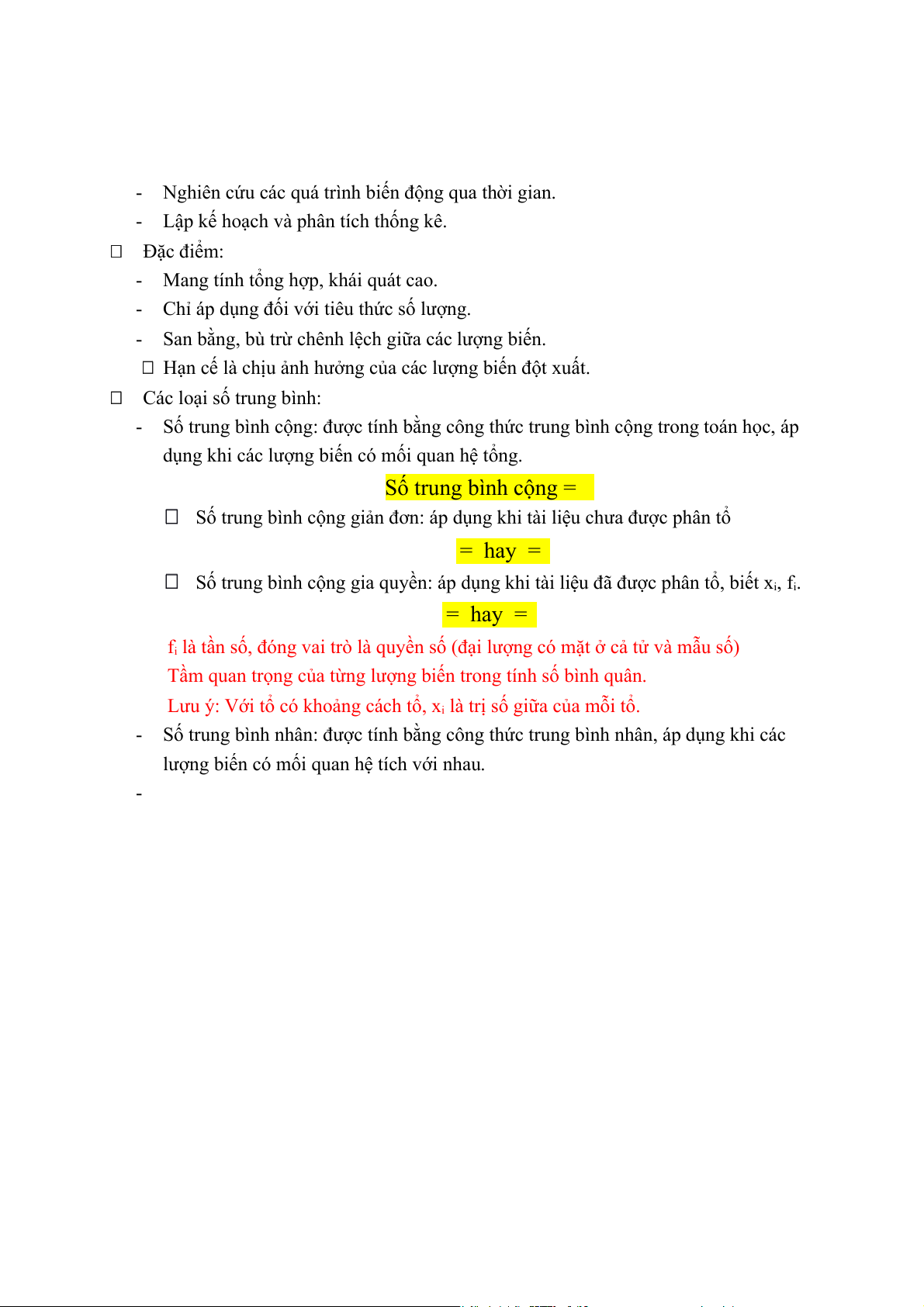 Số trung bình cộng gia quyền: áp dụng khi tài liệu đã được phân tổ, biết xi, fi. = hay =