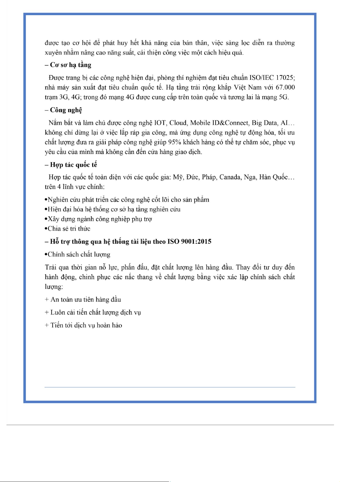 9001:2015 tại Tổng Công ty Công nghiệp Công nghệ cao Viettel (VHT).............10