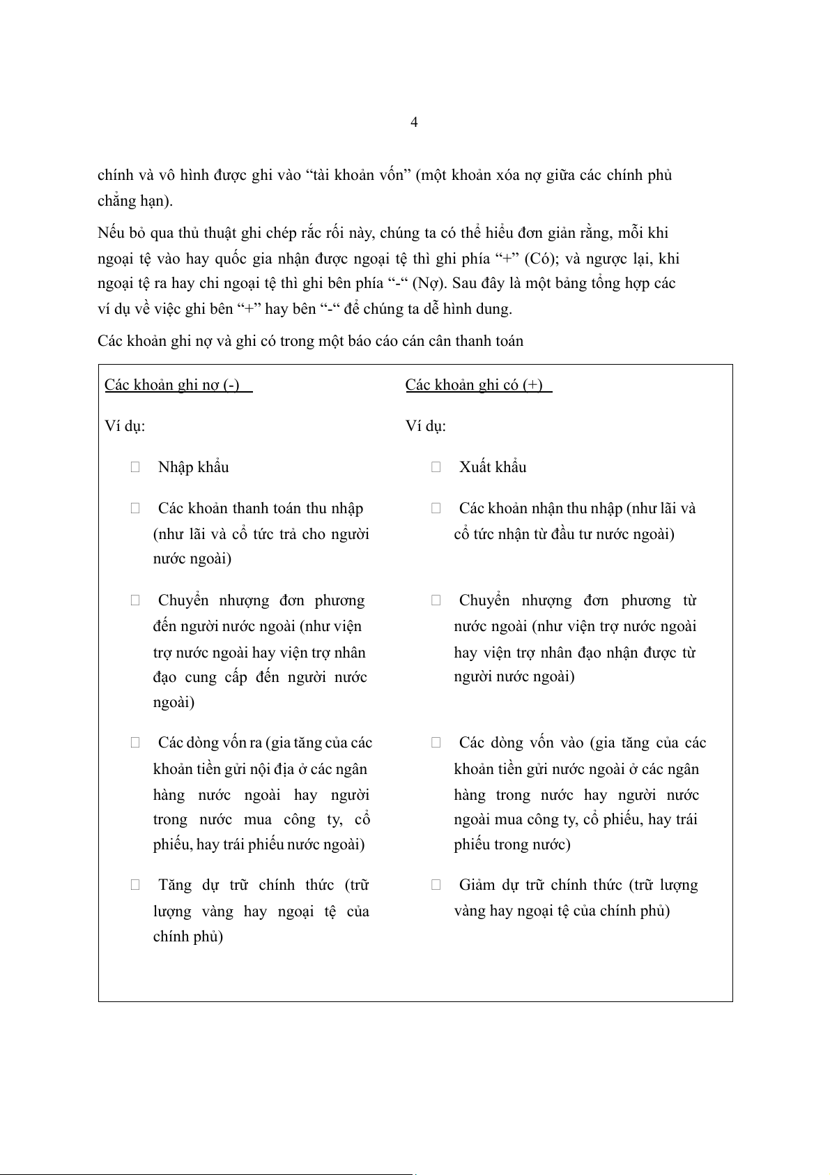 ngoại tệ vào hay quốc gia nhận được ngoại tệ thì ghi phía “+” (Có); và ngược lại, khi