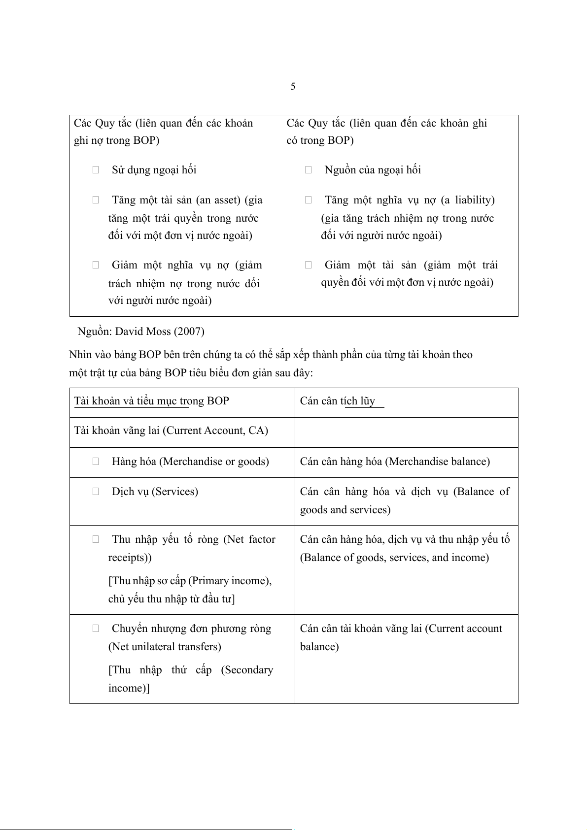 2 Từ năm 1993, Quỹ Tiền tệ Quốc tế (IMF) thay “tài khoản vốn” bằng “tài khoản vốn và tài chính”, theo đó,