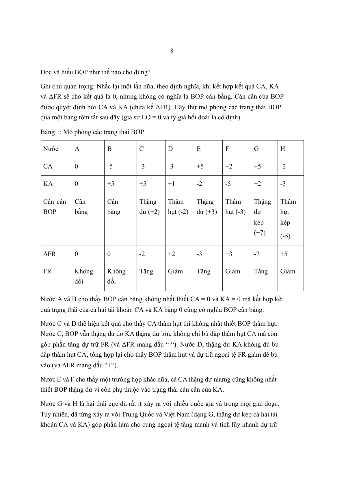 Kiểm tra mối quan hệ trạng thái cán cân thanh toán BOP, ự d t ữ r ạ ngo i hối FR và ΔFR.