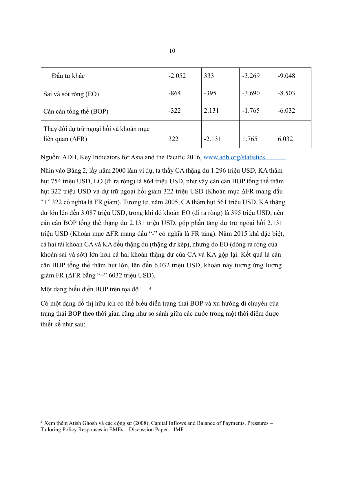 hụt 754 triệu USD, EO (đi ra ròng) là 864 triệu USD, như vậy cán cân BOP tổng thể thâm