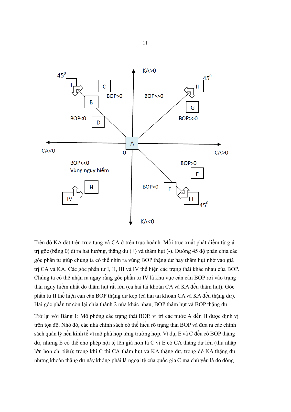 Chúng ta có thể nhận ra ngay rằng góc phần tư IV là khu vực cán cân BOP rơi vào trạng
