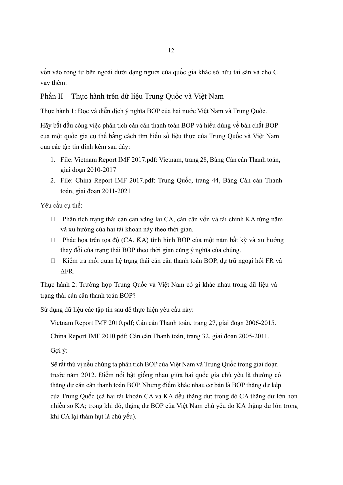 Thực hành 1: Đọc và diễn dịch ý nghĩa BOP của hai nước Việt Nam và Trung Quốc.