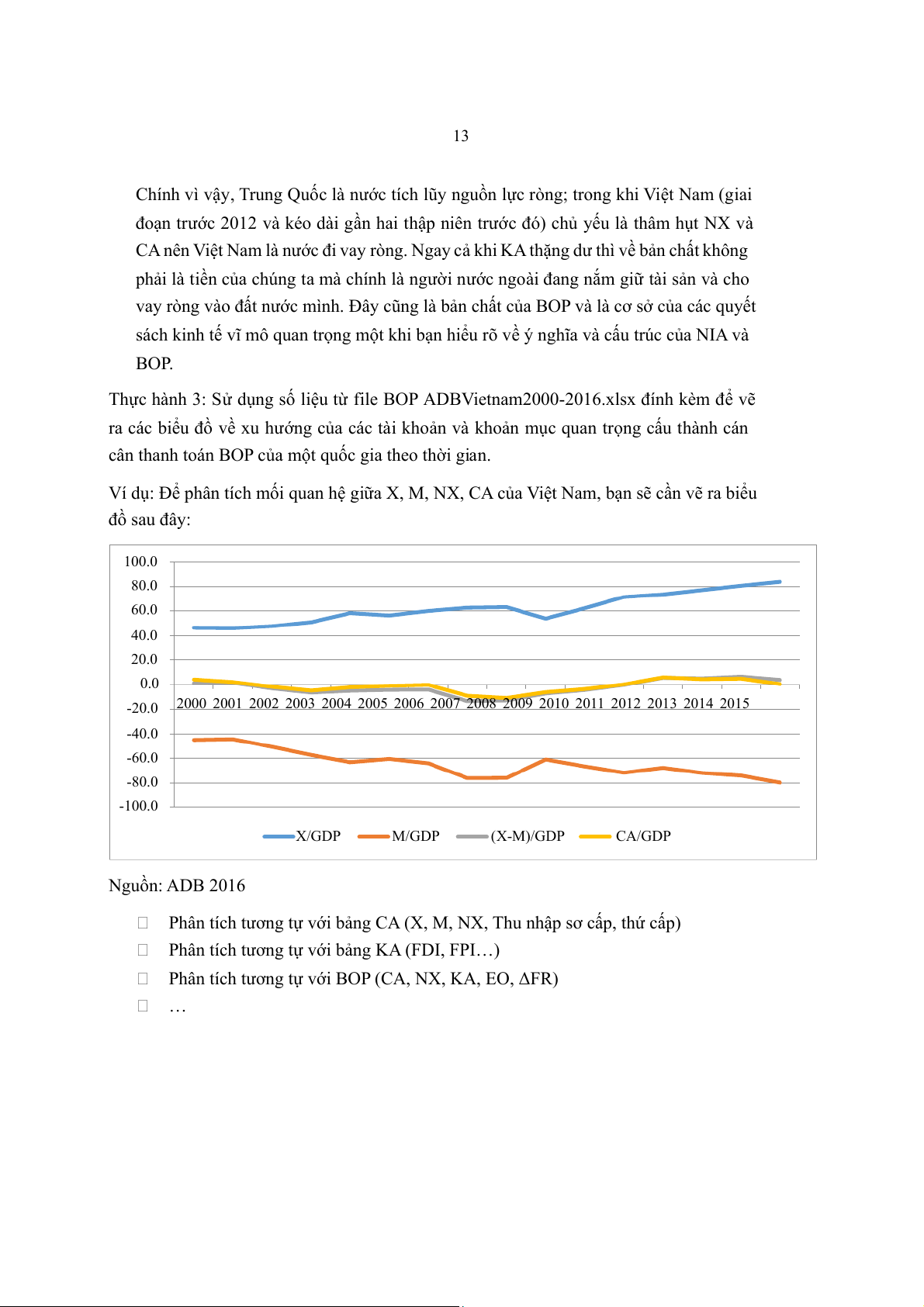 Ví dụ: Để phân tích mối quan hệ giữa X, M, NX, CA của Việt Nam, bạn sẽ cần vẽ ra biểu đồ sau đây: 100.0 80.0 60.0 40.0 20.0 0.0 -20.0