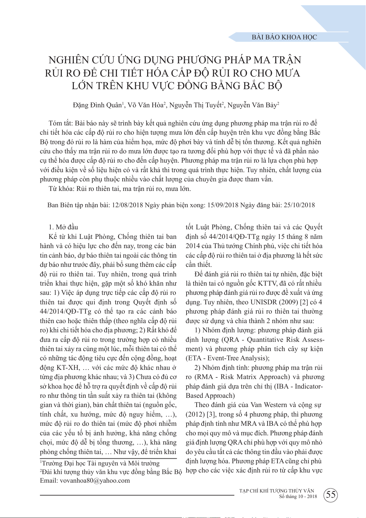 TẠP CHÍ KHÍ TƯỢNG THỦY VĂN Số tháng 10 - 2018 55 BÀI BÁO KHOA HỌC