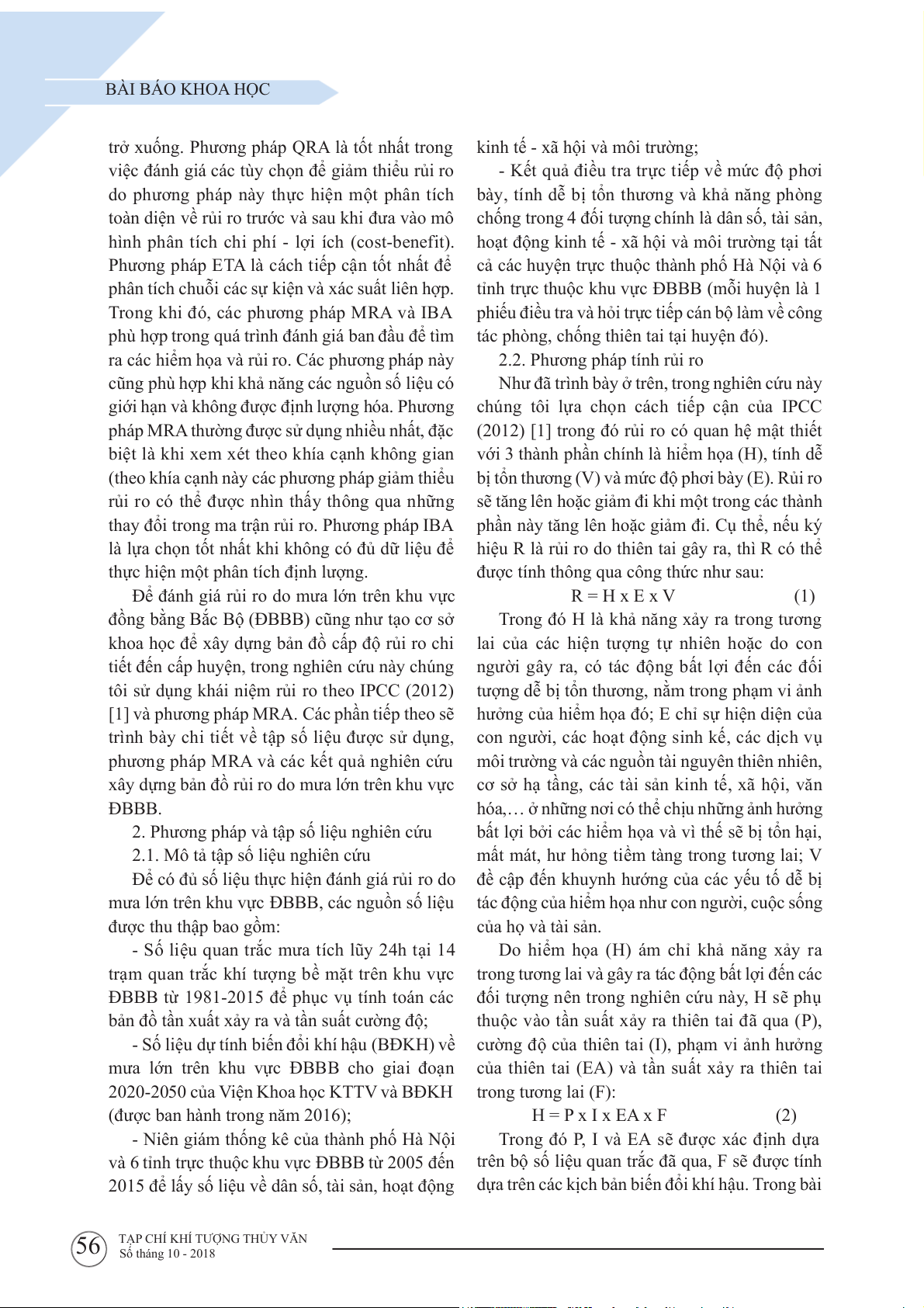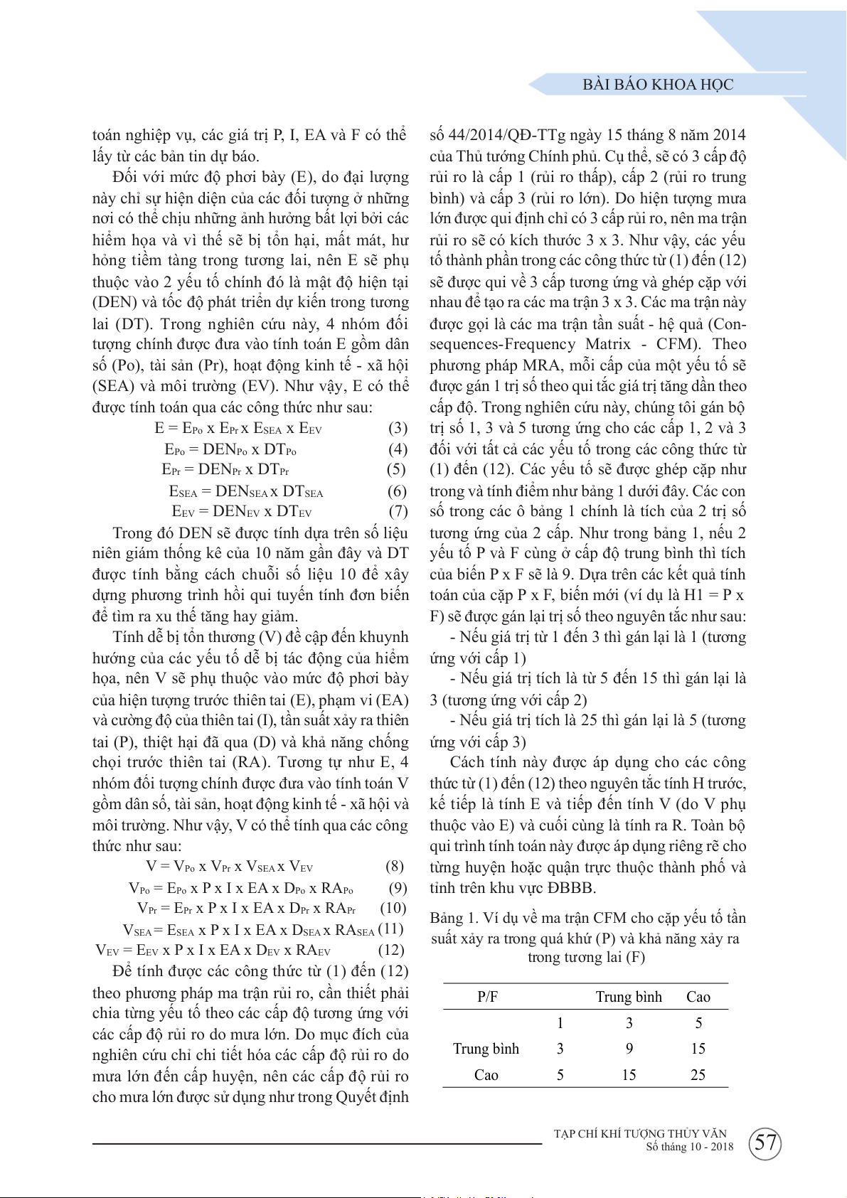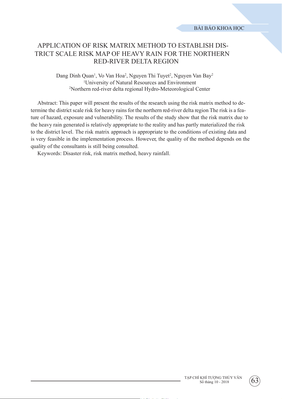 62 TẠP CHÍ KHÍ TƯỢNG THỦY VĂN Số tháng 10 - 2018 BÀI BÁO KHOA HỌC