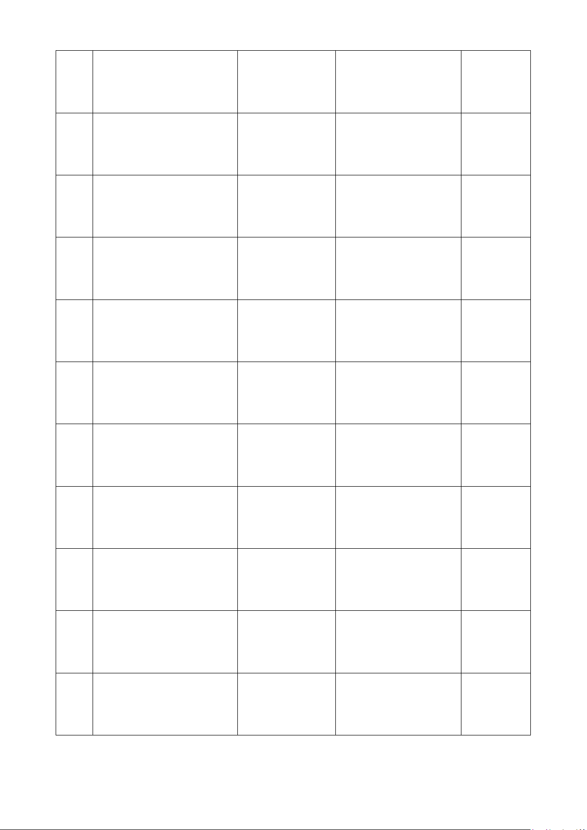41 Đinh Thị Quỳnh Hương Thành viên Thuyết trình 9.6 42 Đỗ Thị Thu Hương Thành viên Thuyết trình 9.6 43 Nguyễn Hoàng Thảo Nhóm trưởng Nội dung: Mở đầu, 10 Hương 3.1, 2.6, Tổng kết 44 Trần Mai Hương Thành viên Nội dung: ý 2 của 9.5 3.2 45 Phạm Duy Khánh Thành viên Nội dung: 2.2, 2.3 9.2 46 Nguyễn Hữu Kiên Thành viên Làm Slide 9.2 47 Tạ Trung Kiệt Thành viên Làm Slide 9.6 48 Phạm Thị Thanh Lam Thành viên Nội dung: 2.4, 2.5 9.2 49 Đào Xuân Lan Thành viên Nội dung: 2.1, 3.2 9.6 50 Dương Nguyễn Gia Thành viên Nội dung: 3.3, 3.4 9.2 Linh 2 lOMoAR cPSD| 40551442 Mục lục