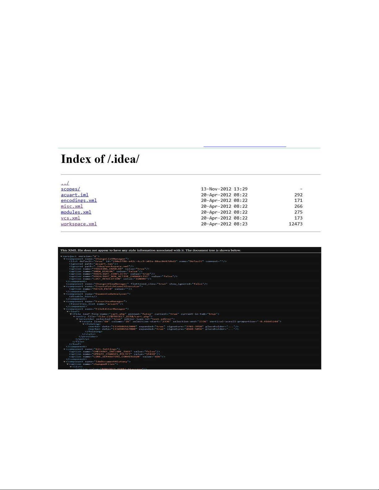 - Truy cập vào đường link chính + với /.idea/: “ http://testphp.vulnweb.com/.idea/” Phát hiện: