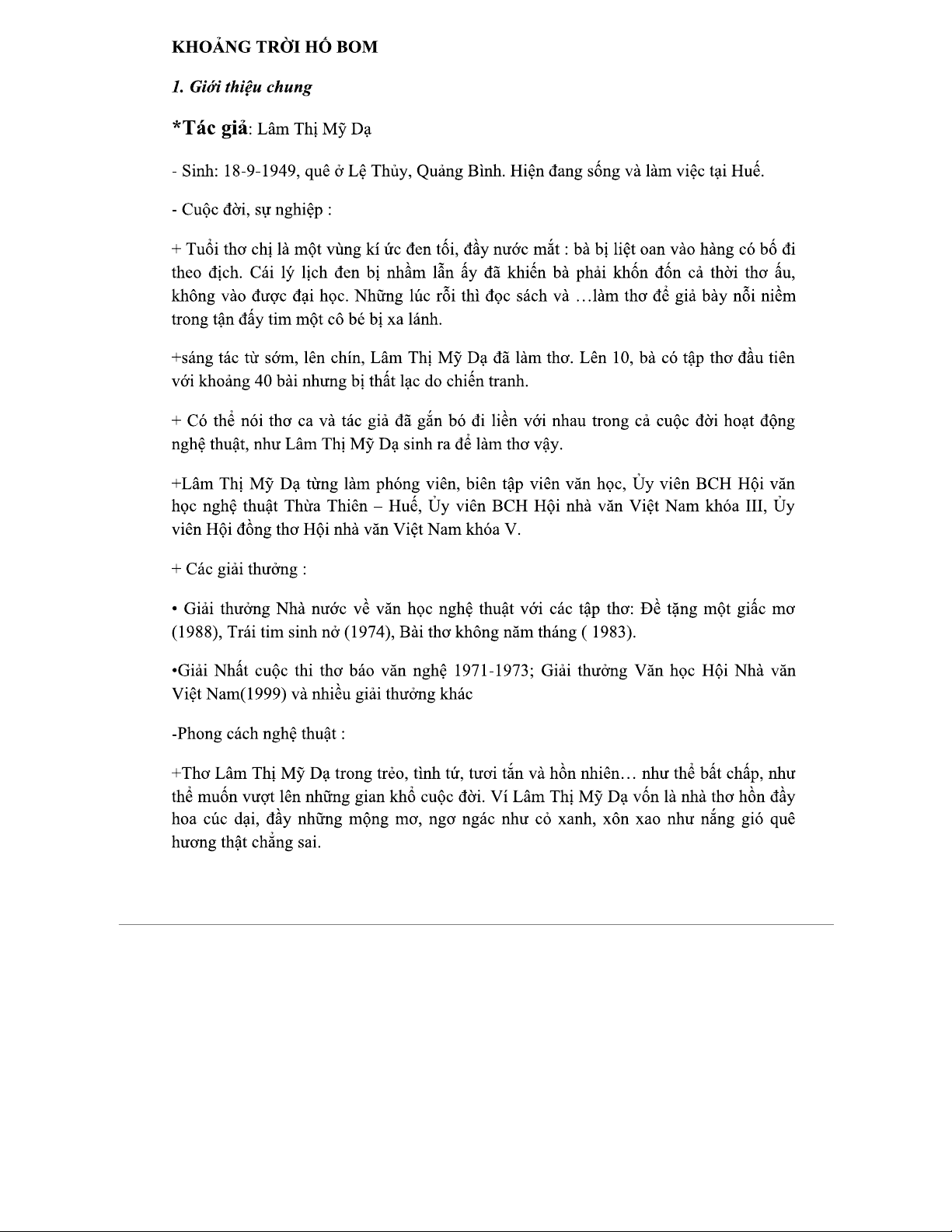 Nghiên cứu về "Khoảng Trời Hố Bom" của Lâm Thị Mỹ Dạ - Tác phẩm nổi bật