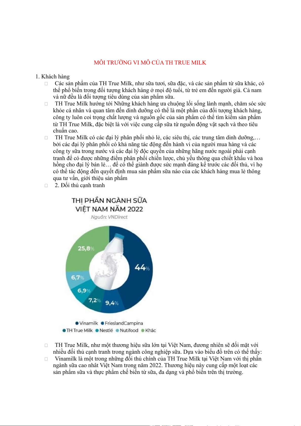 MÔI TRƯỜNG VI MÔ CỦA TH TRUE MILK 1. Khách hàng