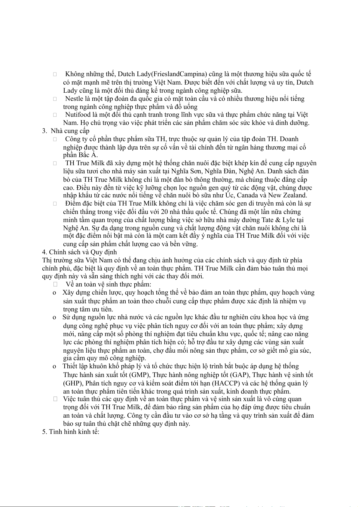 chính phủ, đặc biệt là quy định về an toàn thực phẩm. TH True Milk cần đảm bảo tuân thủ mọi