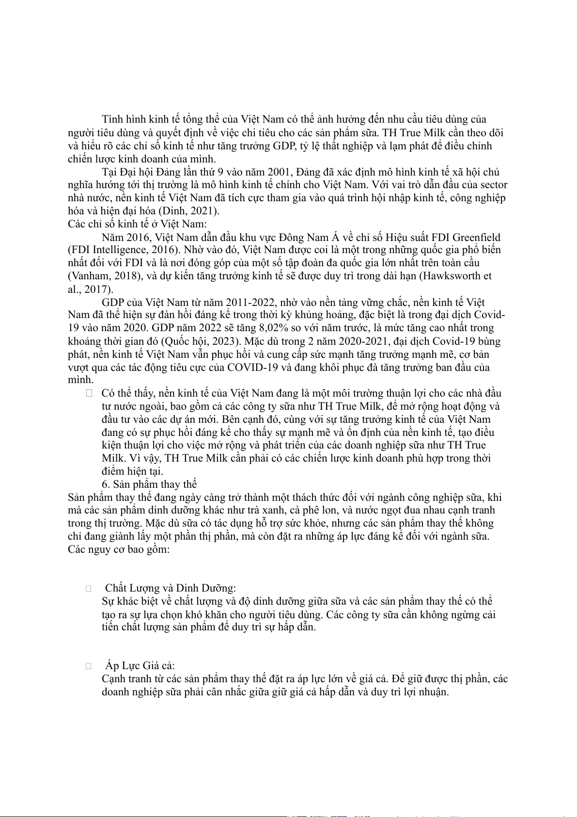 Milk. Vì vậy, TH True Milk cần phải có các chiến lược kinh doanh phù hợp trong thời điểm hiện tại. 6. Sản phẩm thay thế