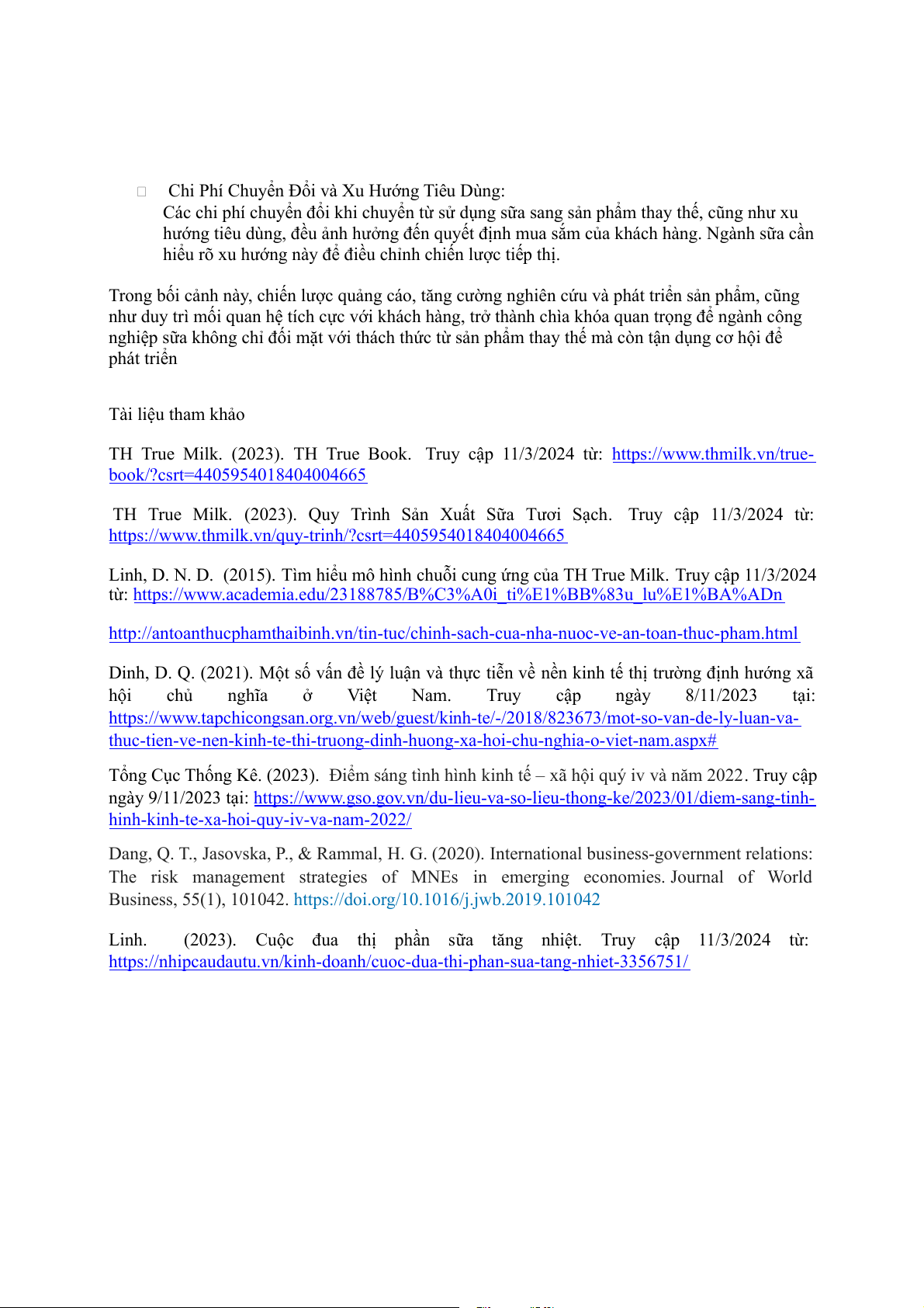 Linh. (2023). Cuộc đua thị phần sữa tăng nhiệt. Truy cập 11/3/2024 từ:
