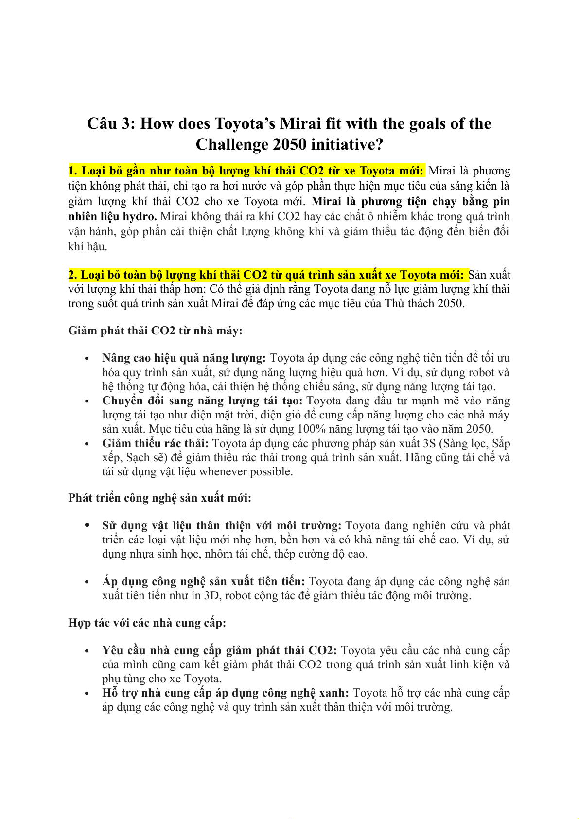 Câu 3: How does Toyota’s Mirai fit with the goals of the