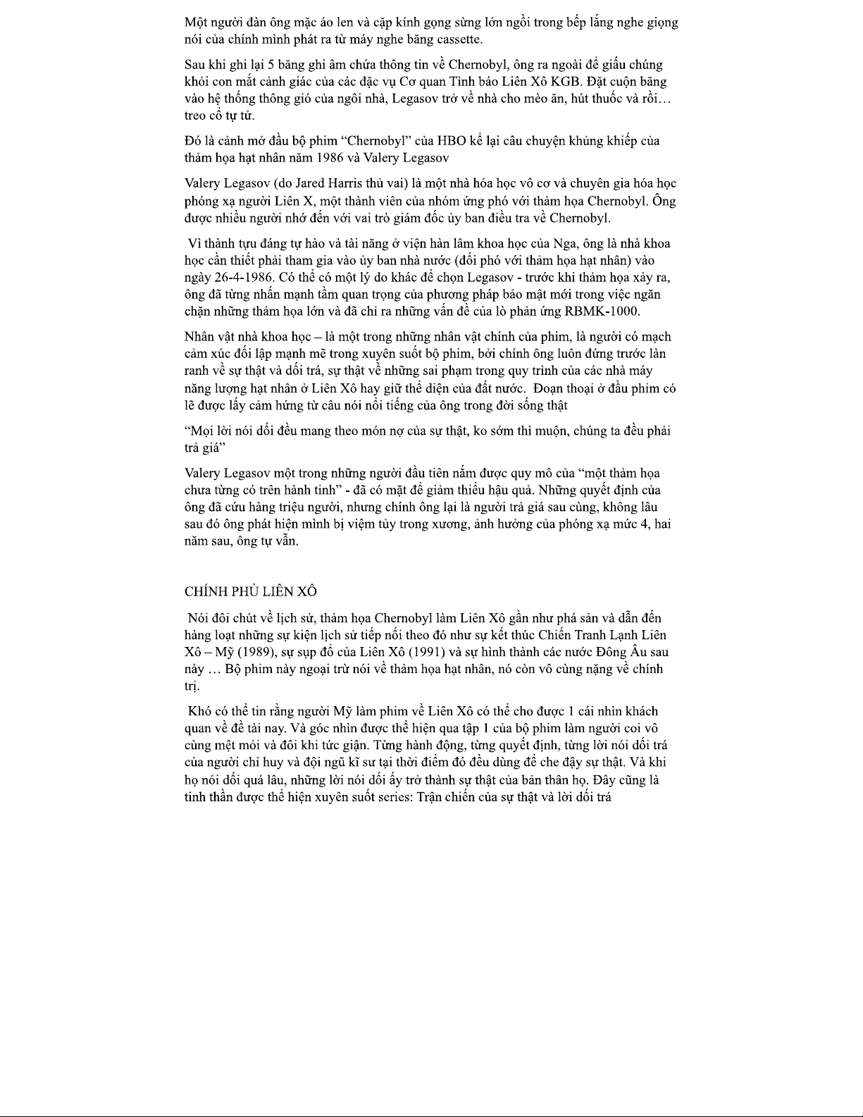 Nghiên cứu về Valery Legasov và Thảm họa Chernobyl