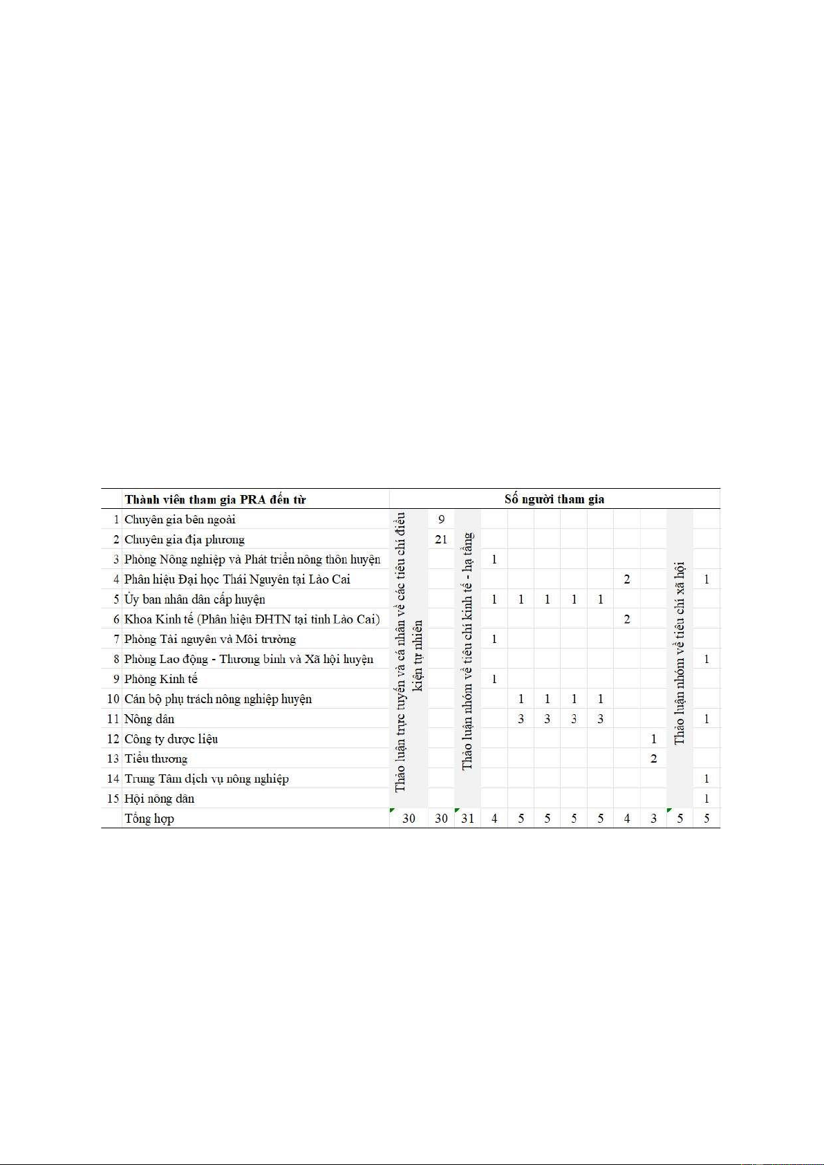 Bảng 1: Thành viên tham gia phương pháp Đánh giá nông thôn có sự tham gia (PRA)