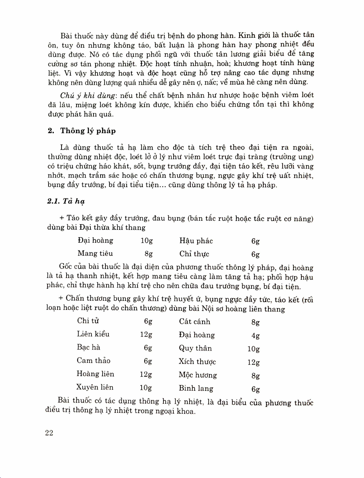 + Chan thiidng vung ngiic dung bai Dai thanh thang Diidng quy 10g Tran bi 6g Dai hoang 4g Cam thao 6g Mang tieu 8g Moc thong 8g Hong hoa 6g Chi xac 6g Hau phac 8g To moc 6g