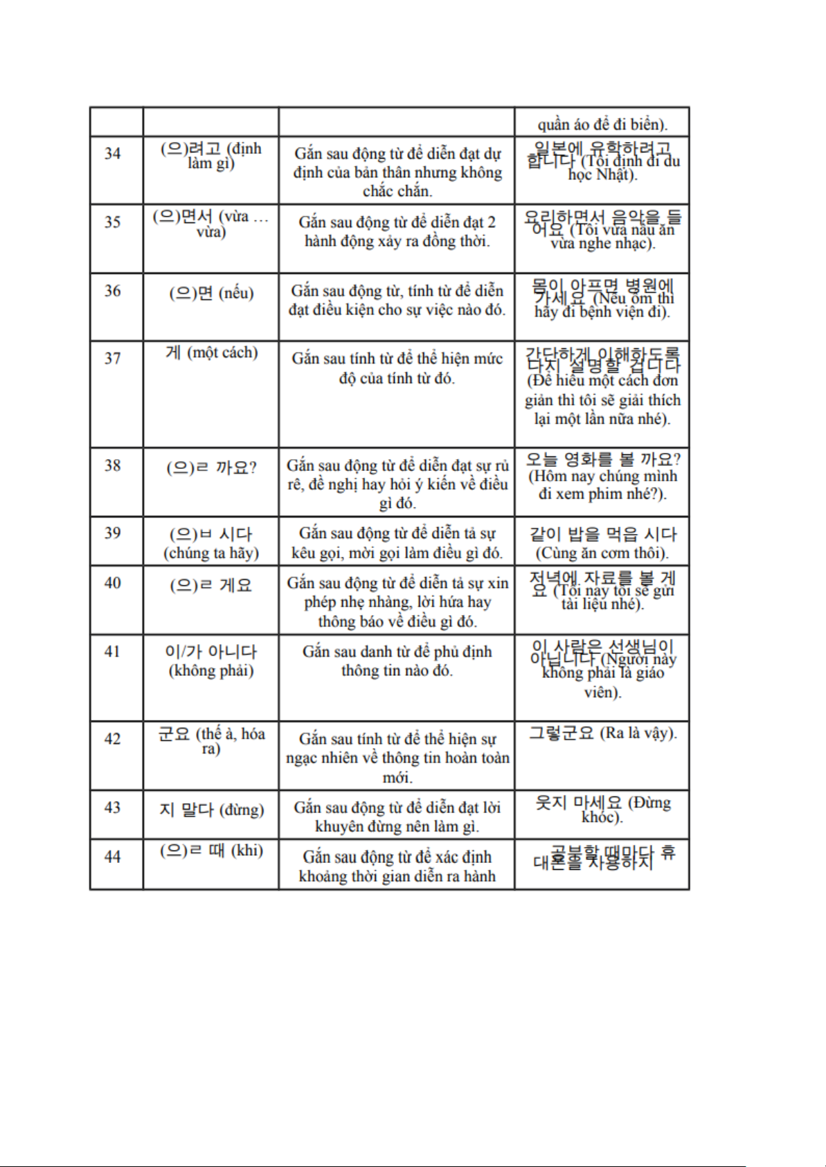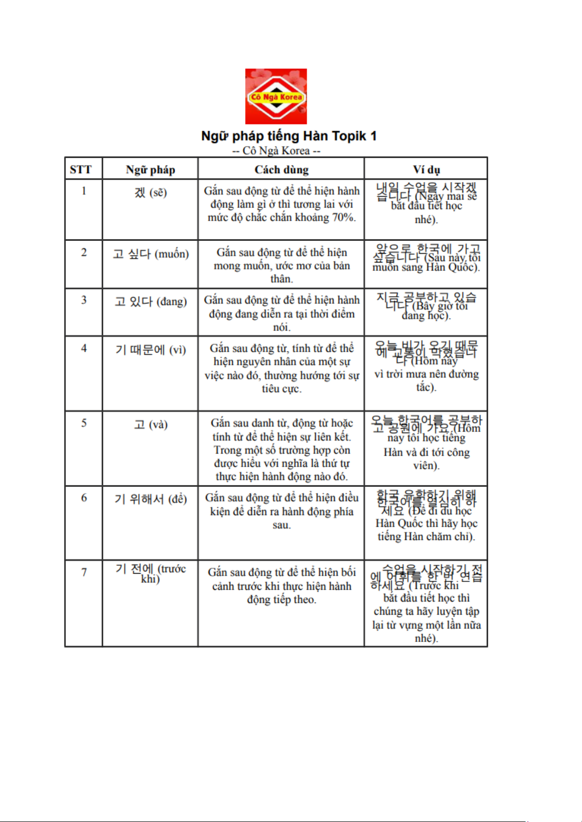 Ngữ pháp TOPIK I: Hệ thống cách dùng và ví dụ cơ bản môn Ngôn ngữ Hàn Quốc | Đại học Công nghiệp Việt Trì