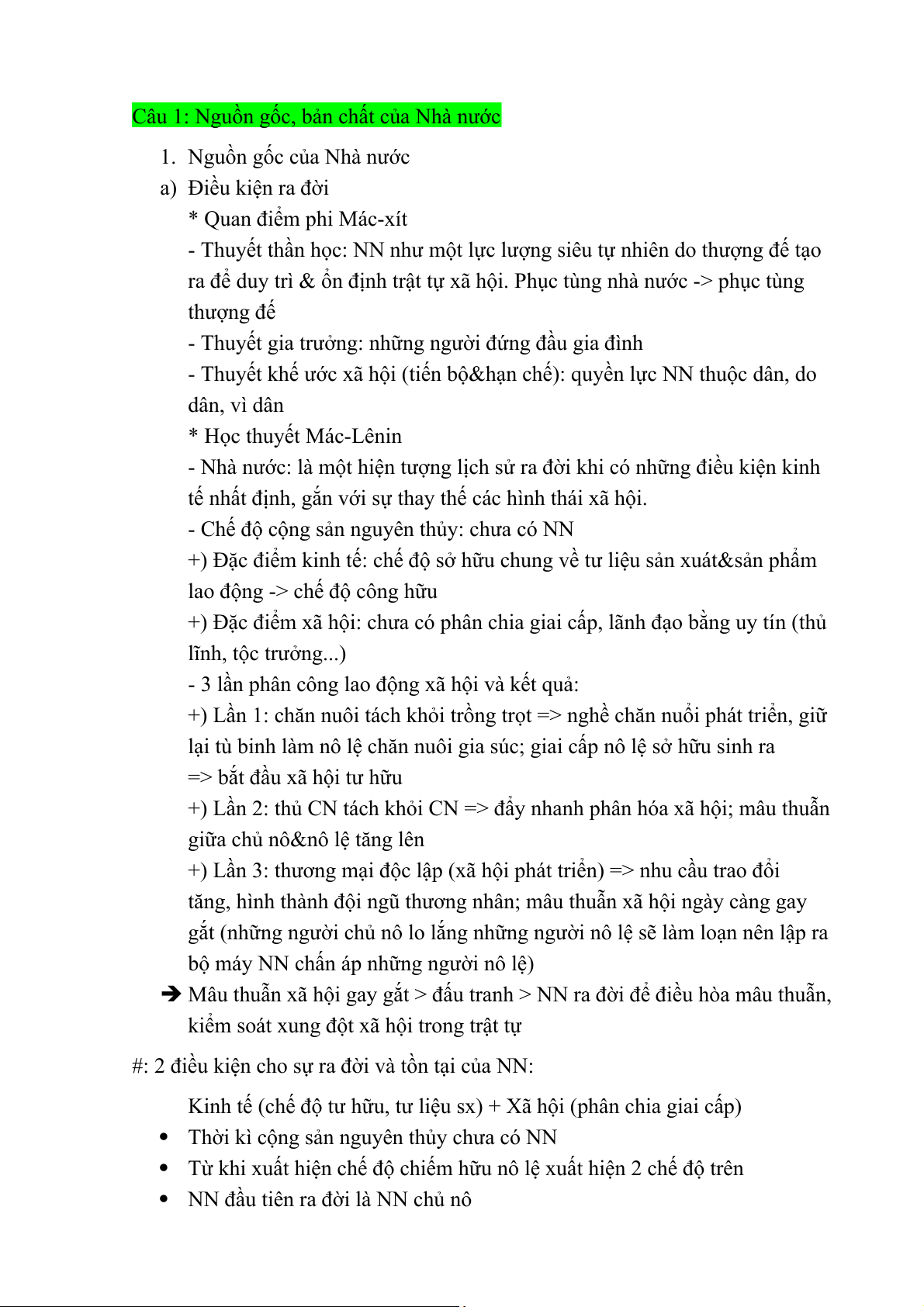 Câu 1: Nguồn gốc, bản chất của Nhà nước