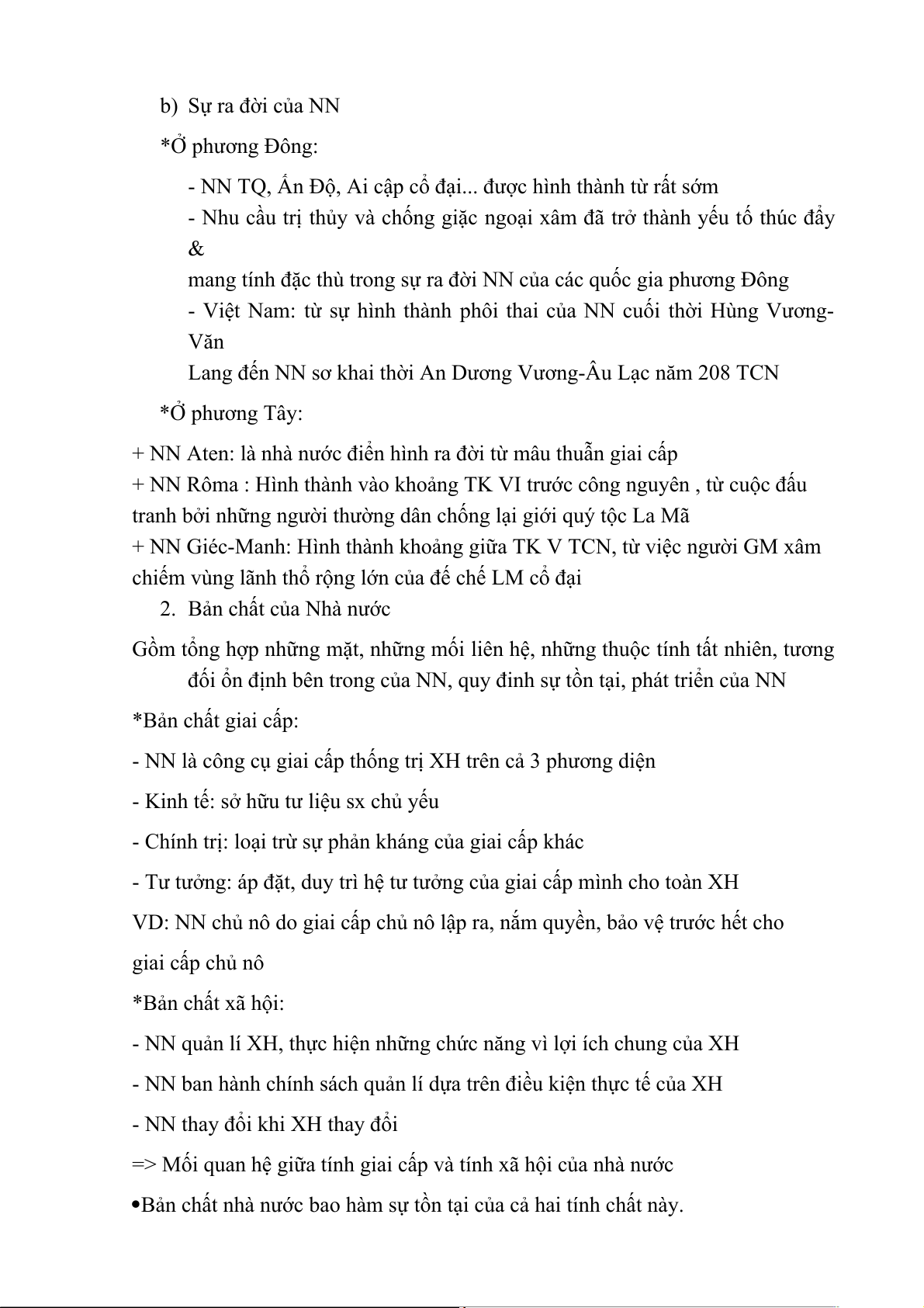 VD: NN chủ nô do giai cấp chủ nô lập ra, nắm quyền, bảo vệ trước hết cho giai cấp chủ nô *Bản chất xã hội: