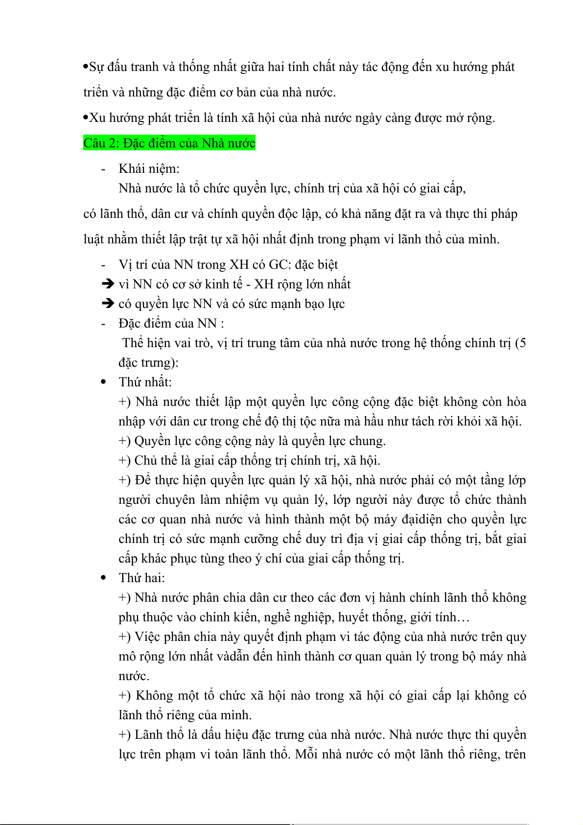 Câu 2: Đặc điểm của Nhà nước - Khái niệm: