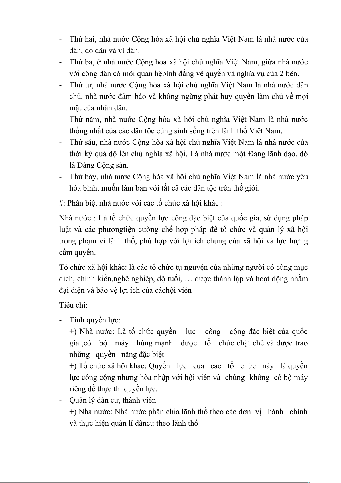 Đặc điểm cơ bản của nhà nước Cộng hòa xã hội chủ nghĩa Việt Nam: