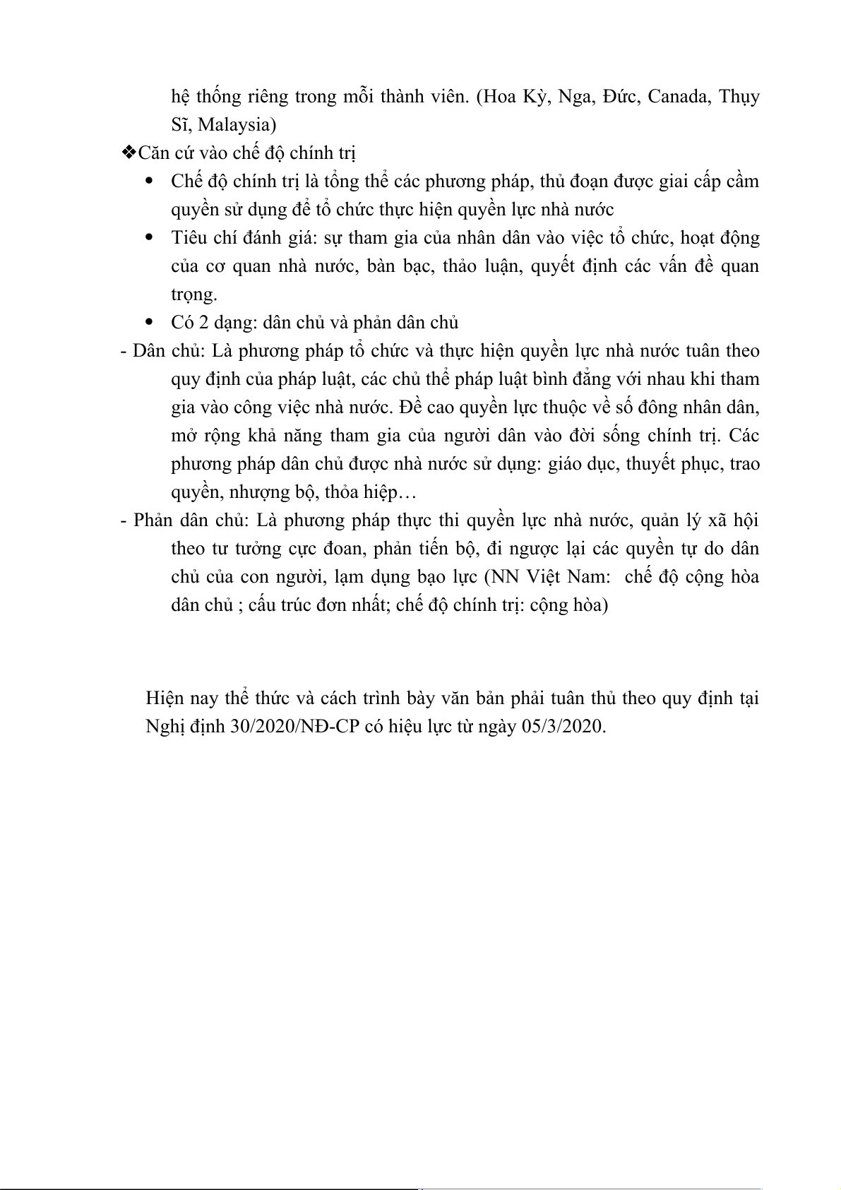 - Nhà nước đơn nhất: Một nhà nước duy nhất, có chủ quyền chung, có một hệ