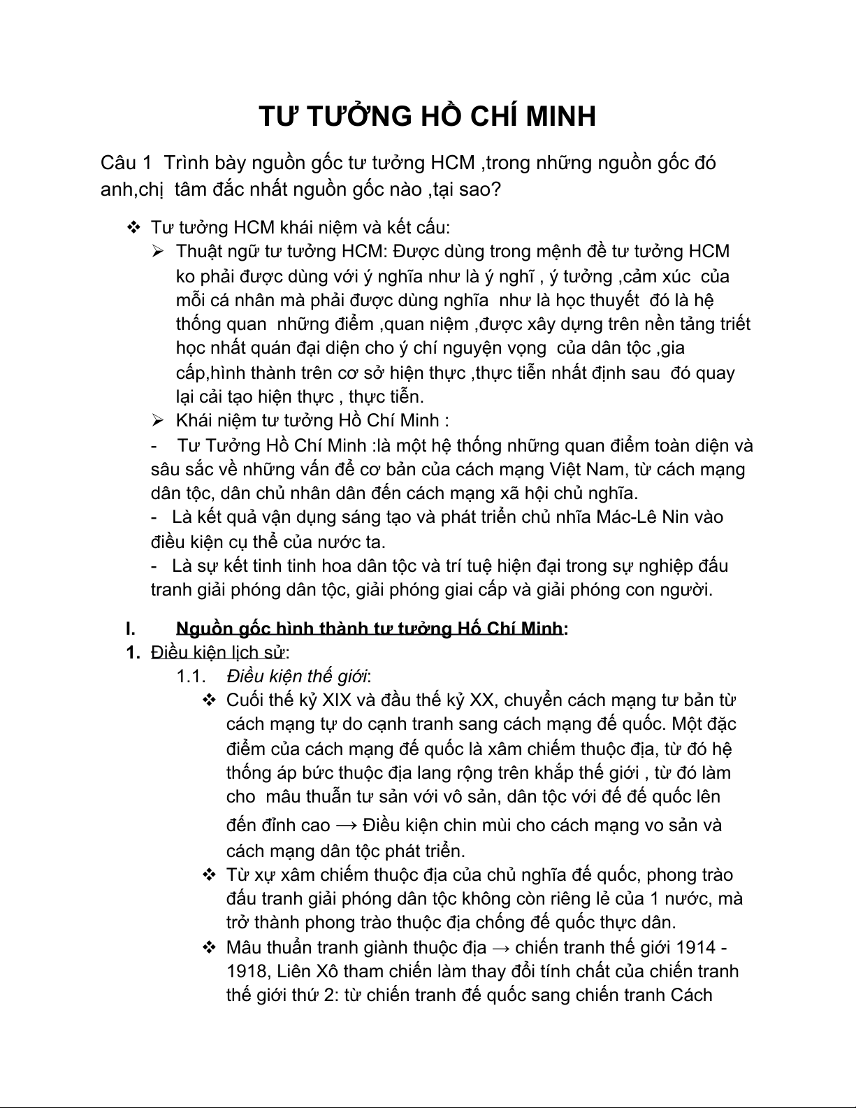 Câu 1 Trình bày nguồn gốc tư tưởng HCM ,trong những nguồn gốc đó