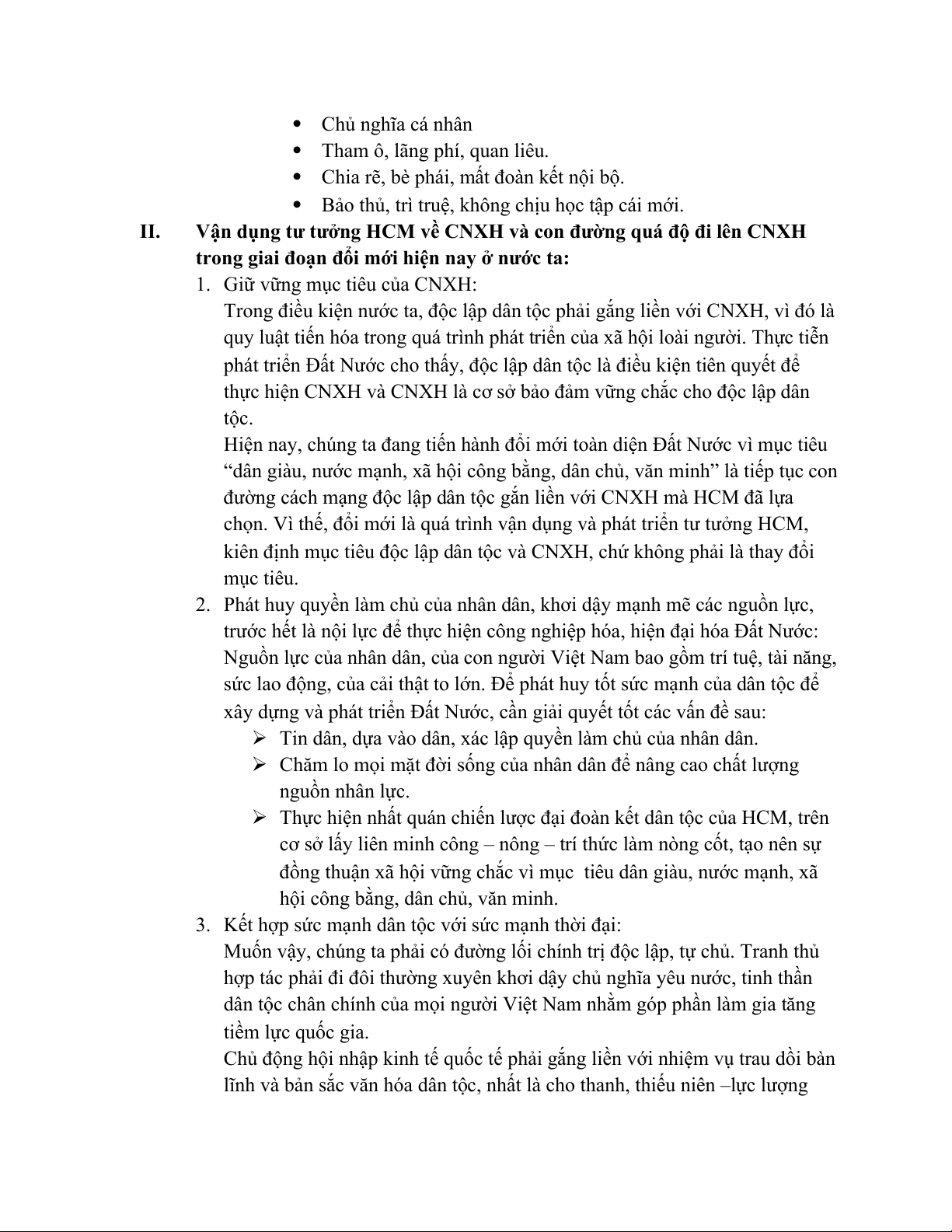 Vận dụng tư tưởng HCM về CNXH và con đường quá độ đi lên CNXH